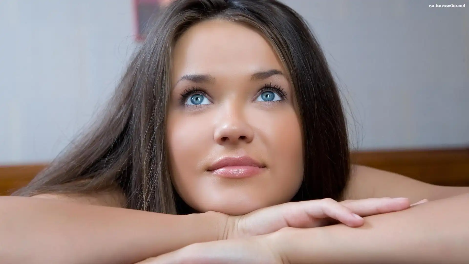 Brunetka, Oczy, Uśmiech, Niebieskie na Komórkę