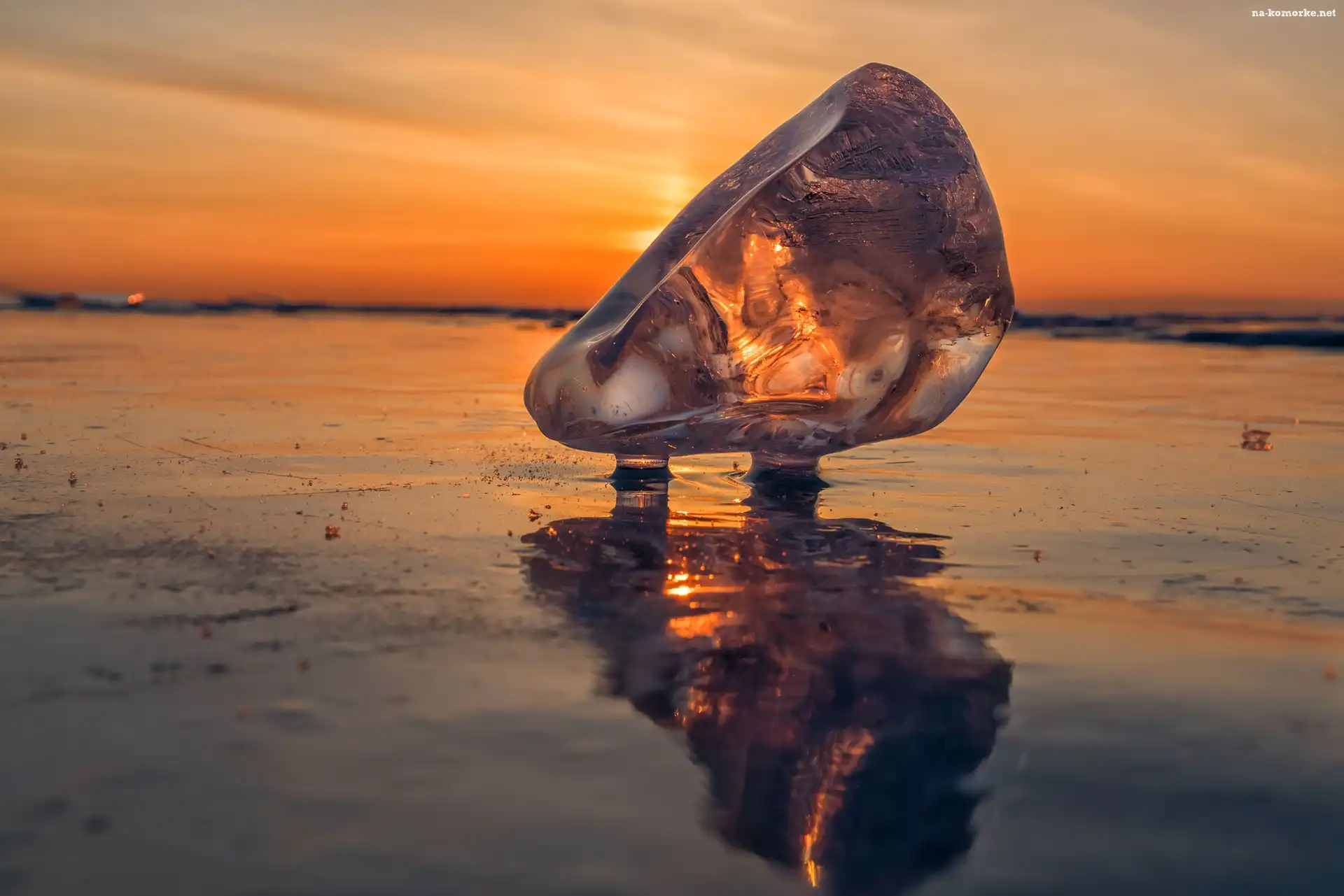 Bryła, Zachód słońca, Lód, Jezioro na Komórkę