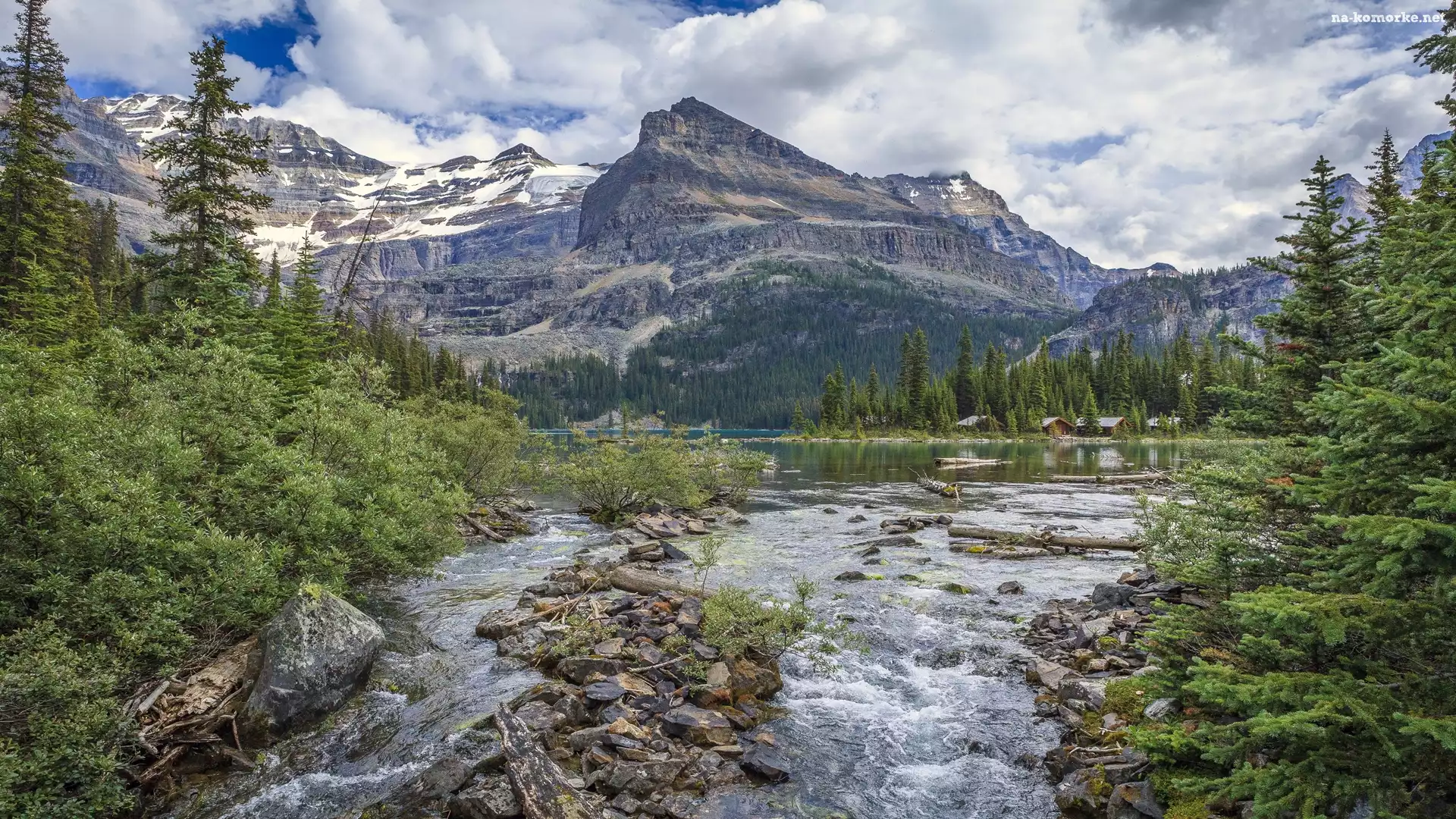 Góry Canadian Rockies, Kolumbia Brytyjska, Kanada, Drzewa, Park Narodowy Yoho, Jezioro O’Hara na Komórkę |