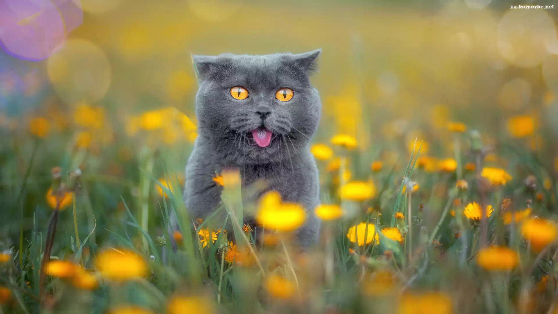 Kot brytyjski krótkowłosy, Łąka, Kwiaty na Komórkę