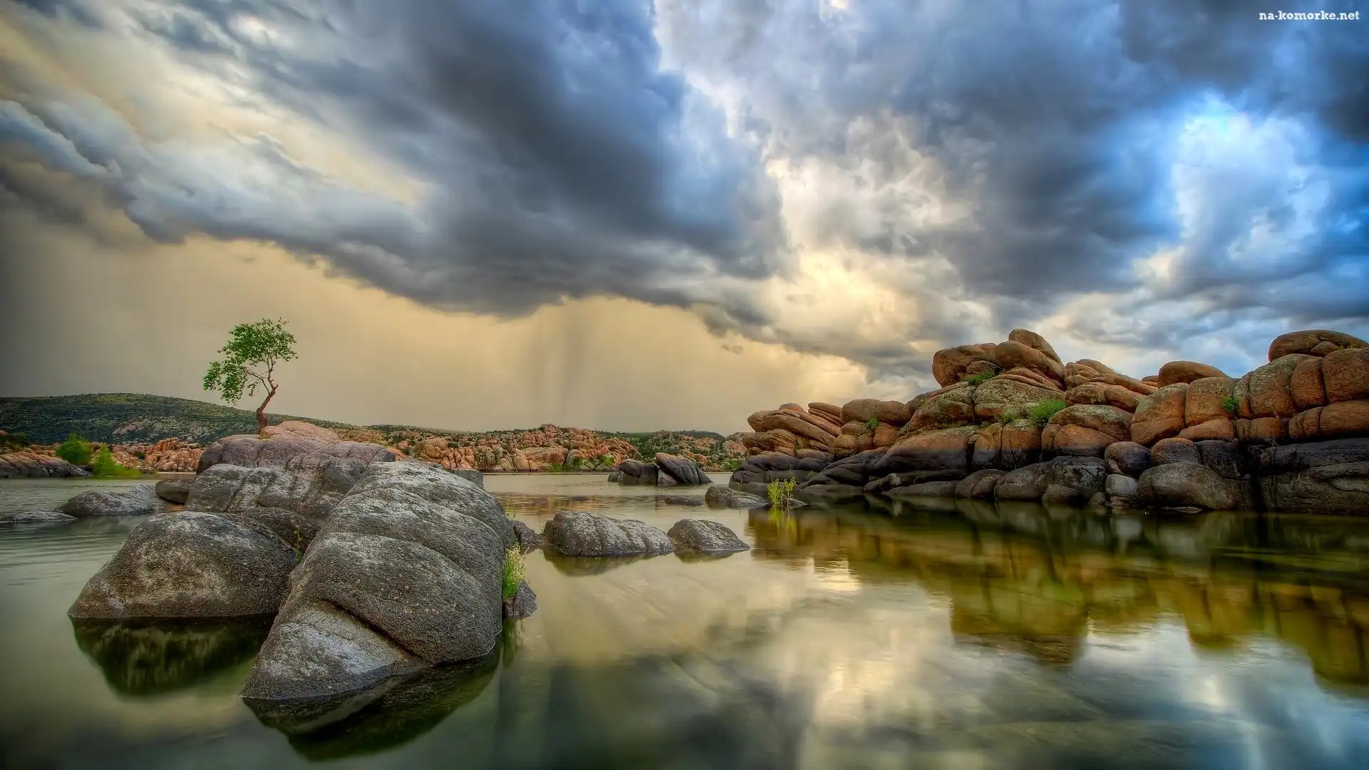 Stany Zjednoczone, Brzeg, Kamienie, Stan Arizona, Prescott, Jezioro Watson Lake, Chmury na Komórkę