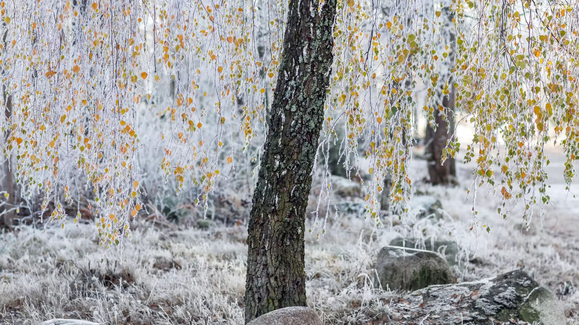 Brzoza, Oszronione, Gałązki, Liście, Drzewo na Komórkę