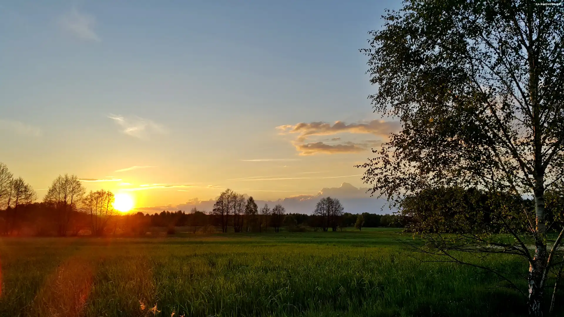 Łąka, Słońca, Las. Brzoza, Zachód na Komórkę