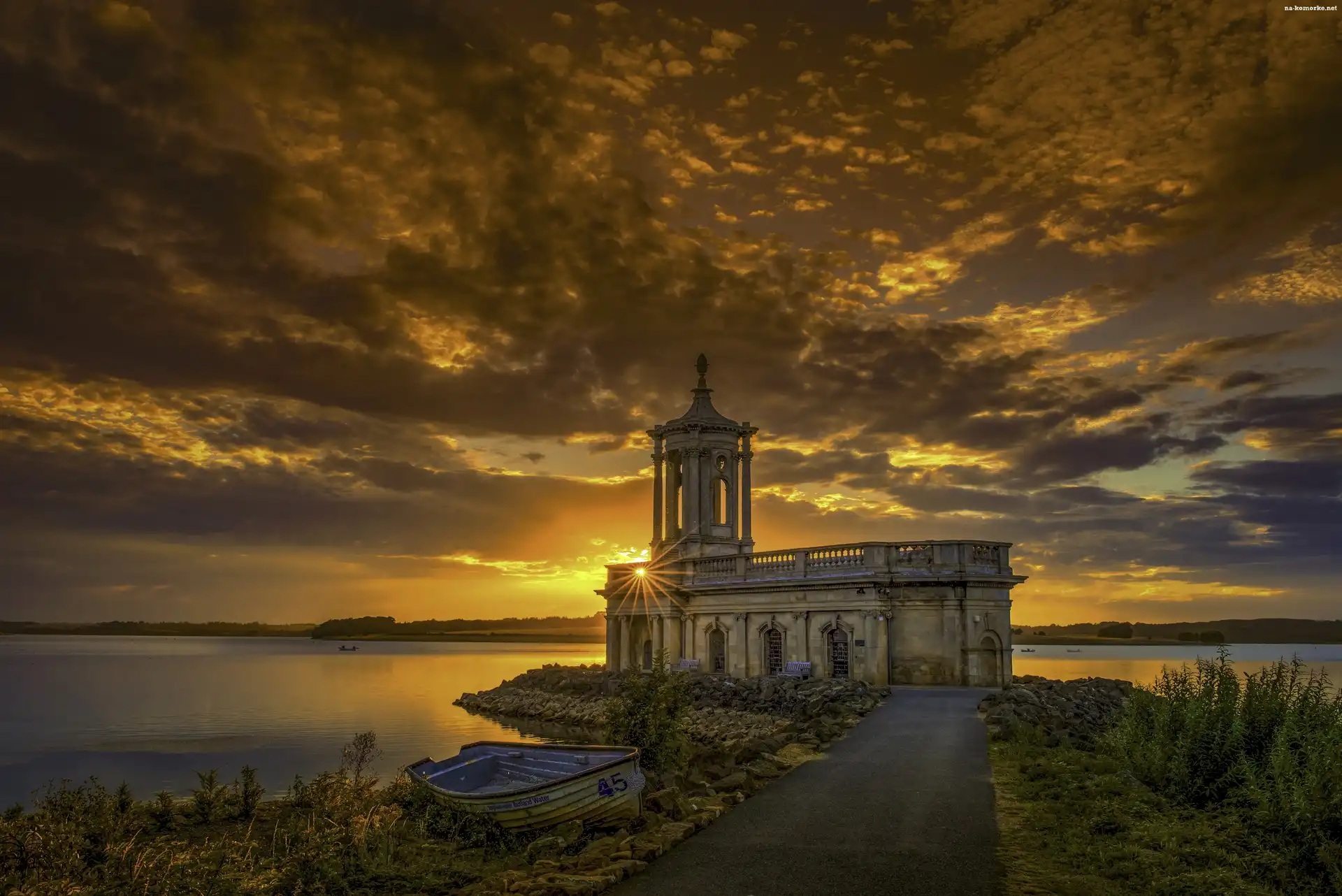 Budowla, Łódka, Zachód Słońca na Komórkę