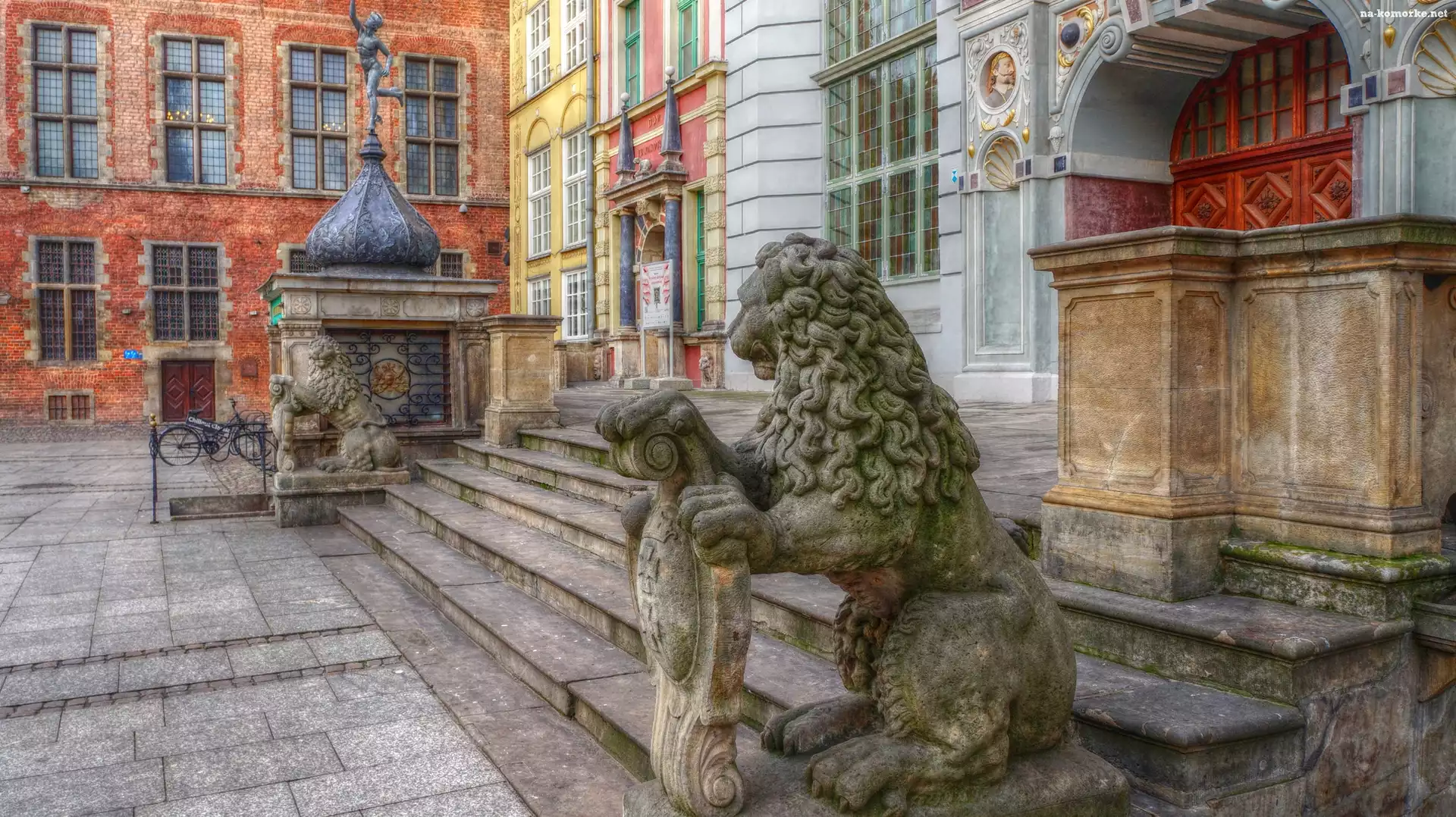 Posągi, Budynek, Gdańsk, Lwy, Dwór Artusa, Kamienne na Komórkę