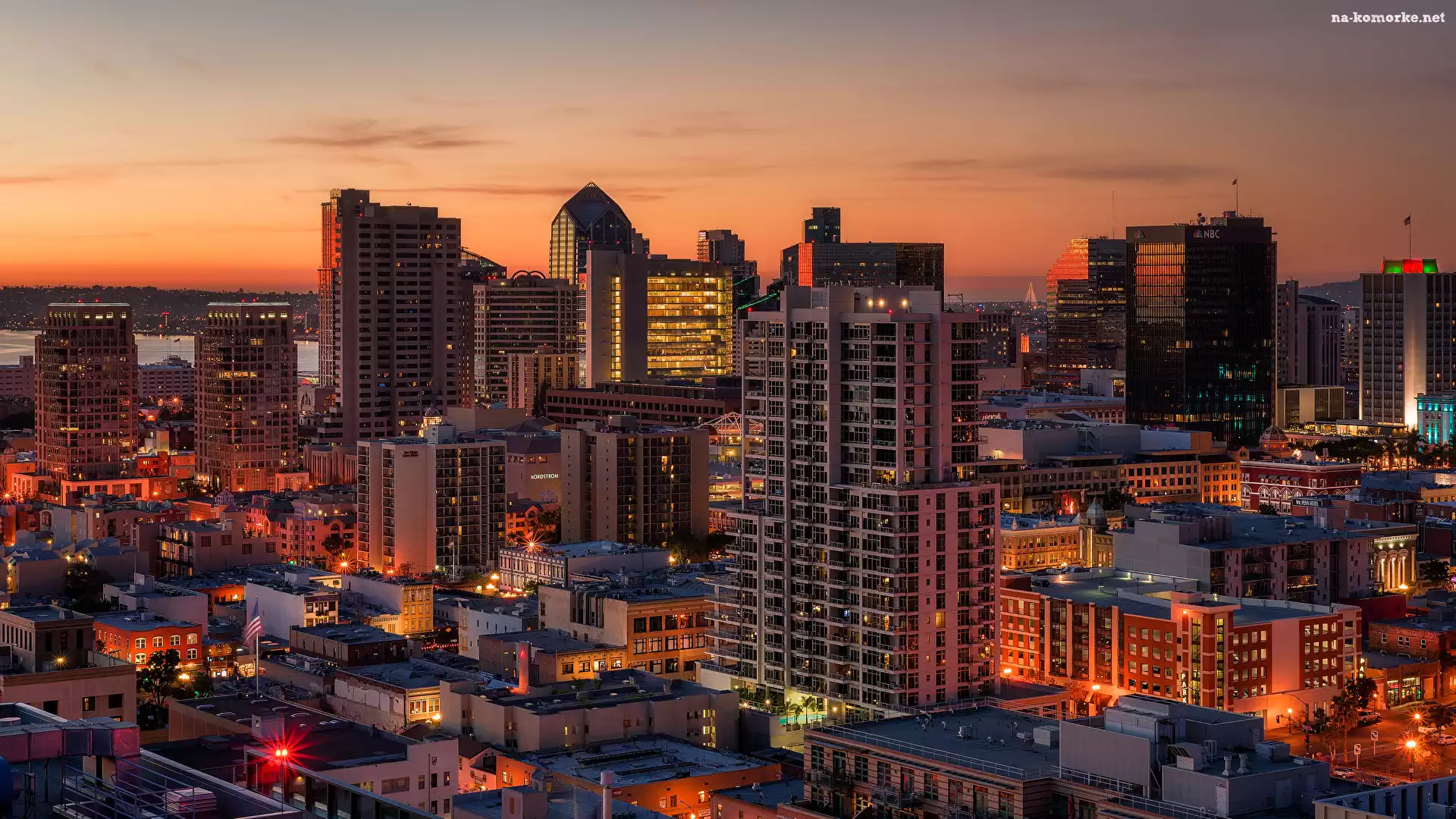 Budynki, Światła, Stany Zjednoczone, Wieczór, Miasto, San Diego, Stan Kalifornia na Komórkę