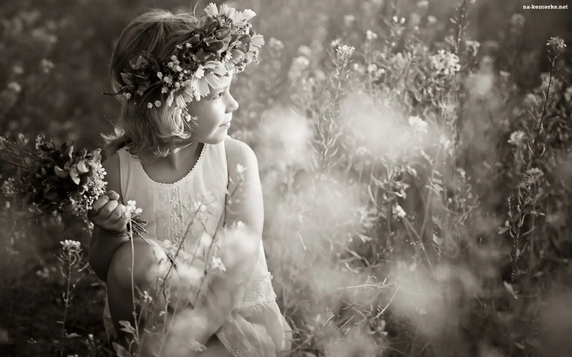 Mała, Bukiecik, Światło, Dziewczynka, Wianuszek, Łąka, Kwiaty na Komórkę