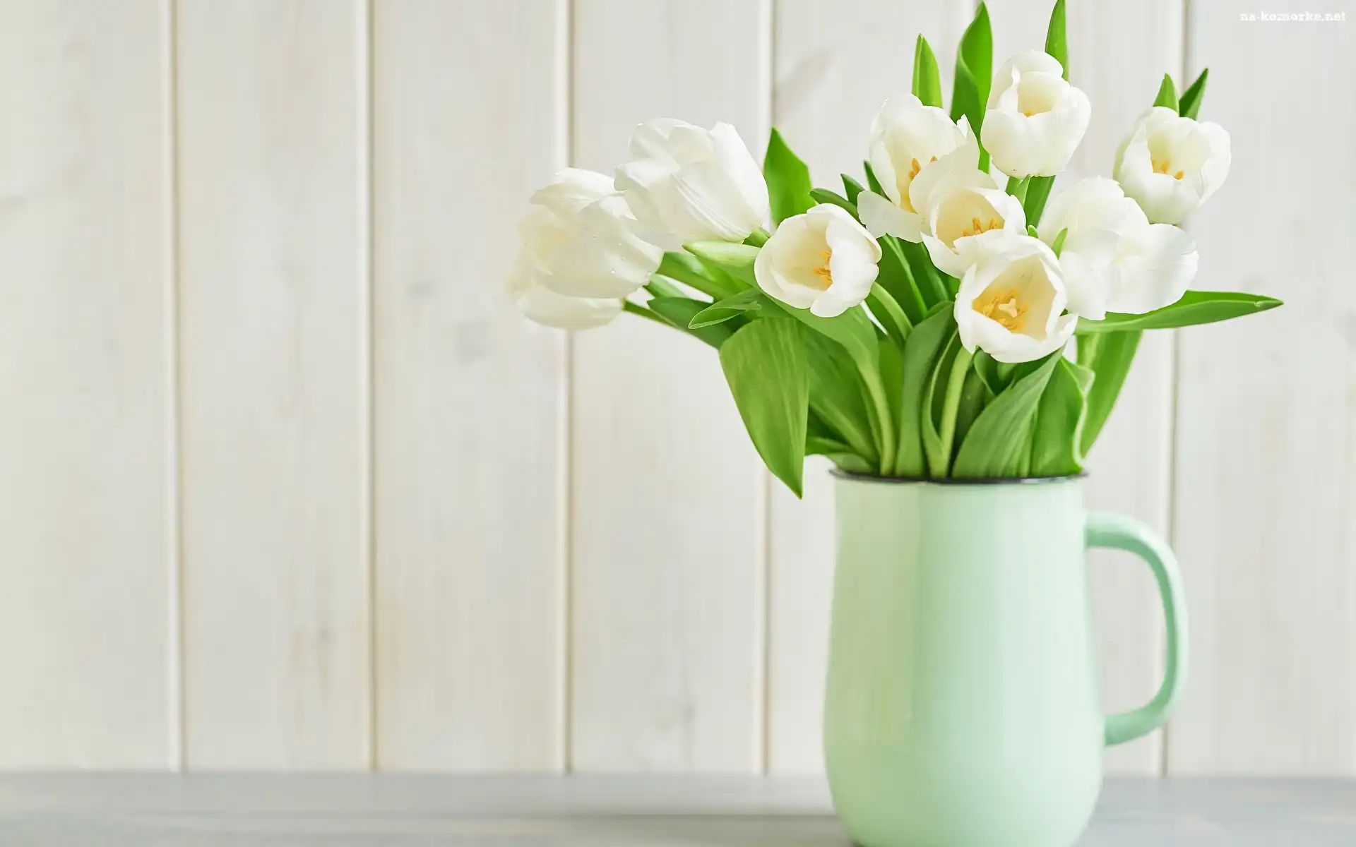 Bukiet, Dzbanek, Białe, Tulipany na Komórkę
