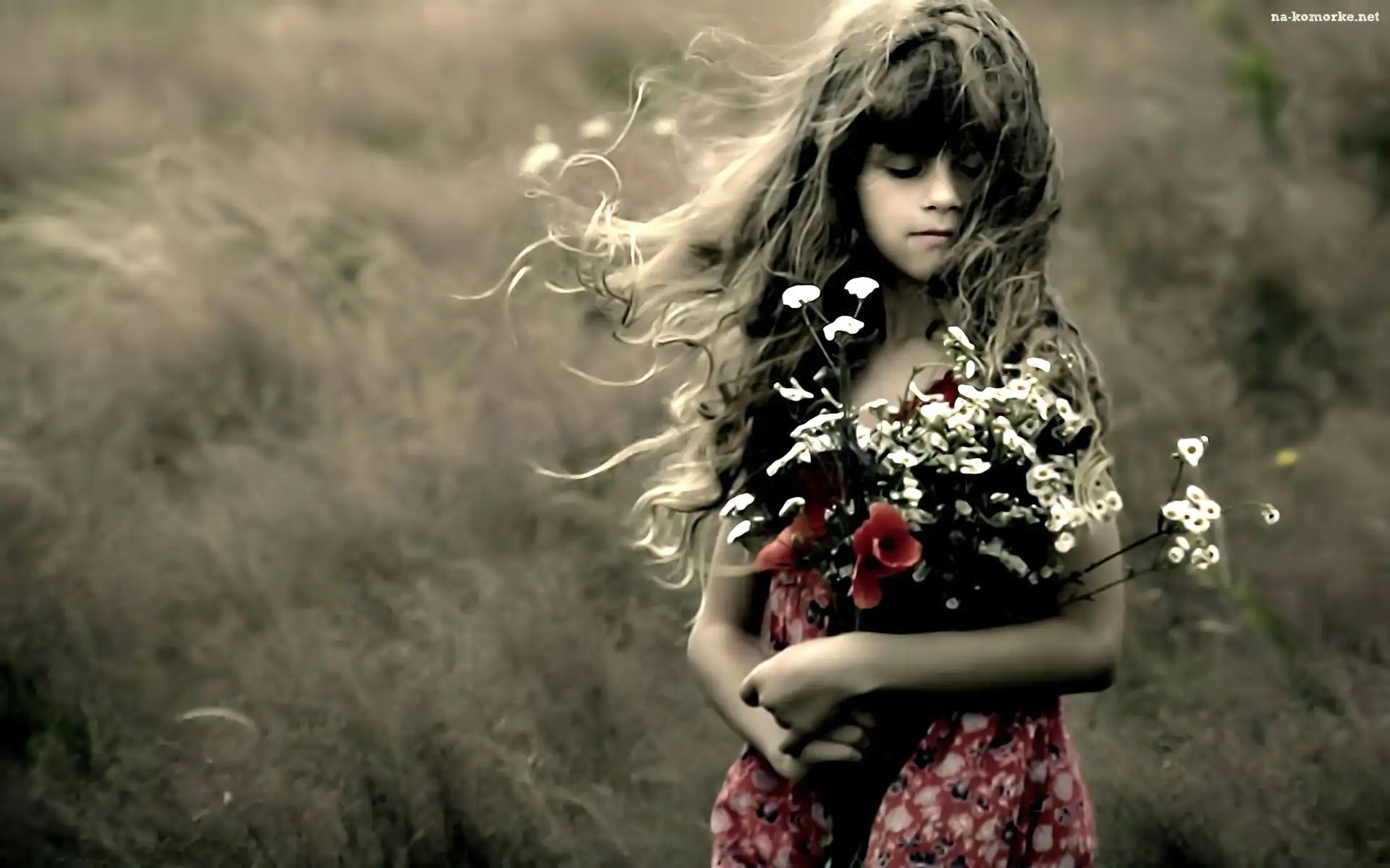Dziewczynka, Kwiaty, Bukiet na Komórkę