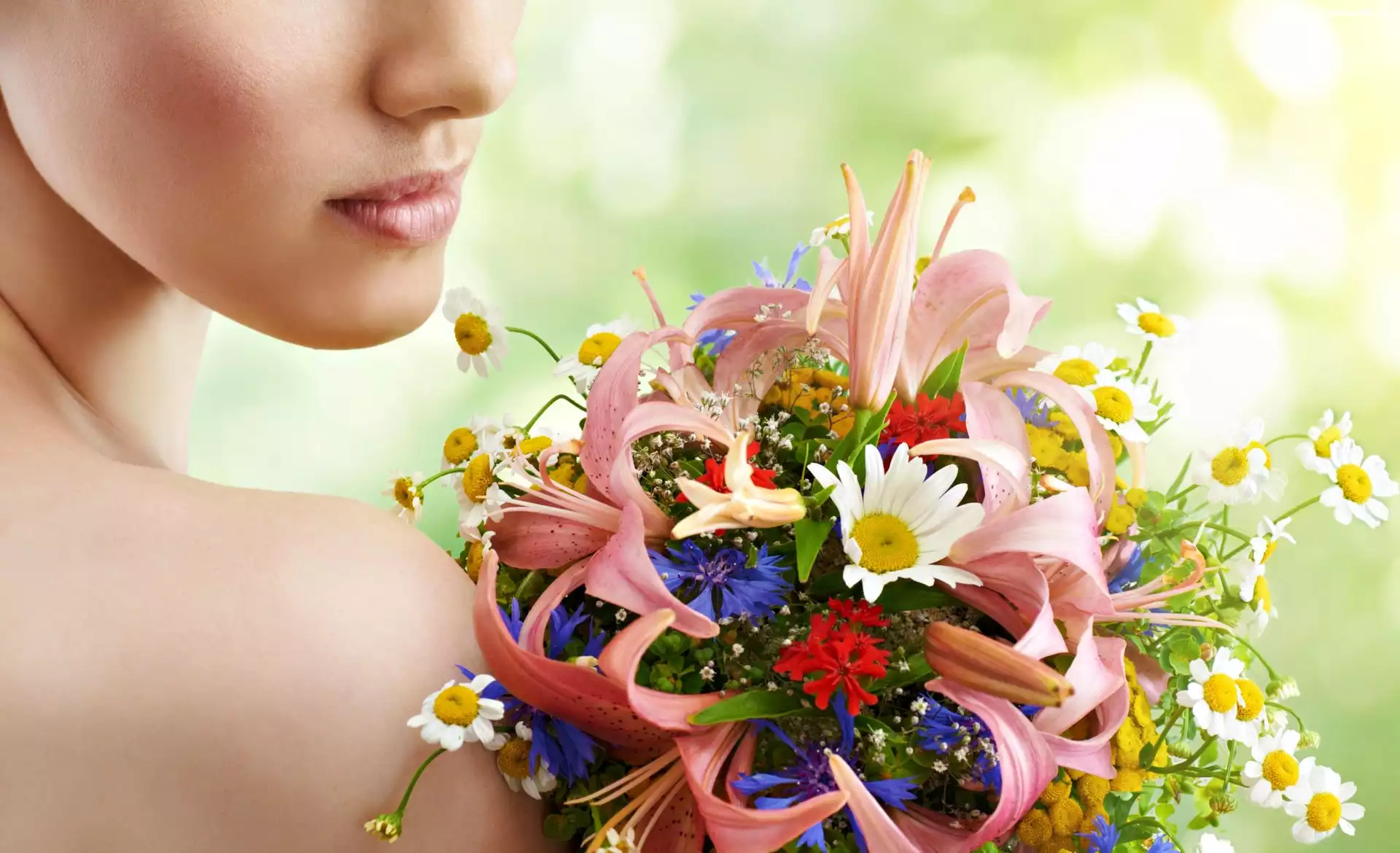 Kobieta, Bukiet, Kwiatów na Komórkę