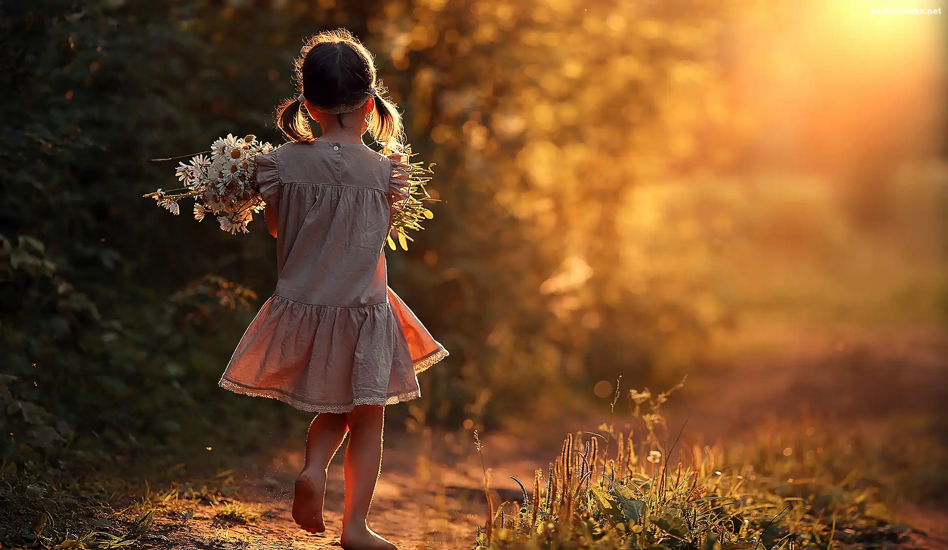 Bukiet, Dziewczynka, Droga, Krzewy, Kwiaty na Komórkę