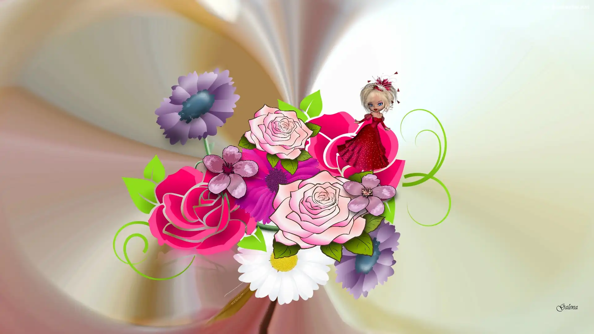 Bukiet, Grafika, Kwiatów, Laleczka na Komórkę