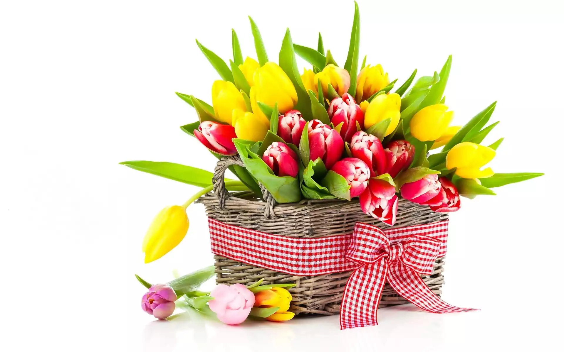 Bukiet, Kosz, Kwiatów, Tulipany na Komórkę