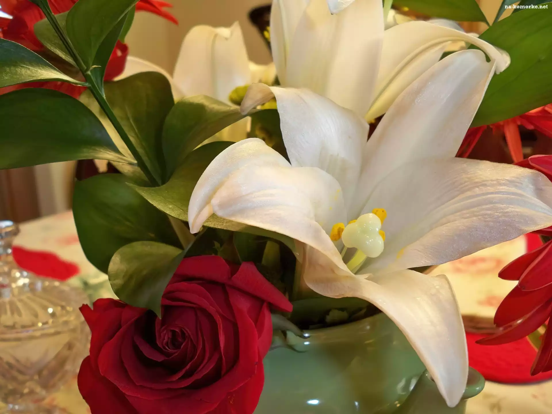 Bukiet, Róża, Kwiatów, Lilie na Komórkę
