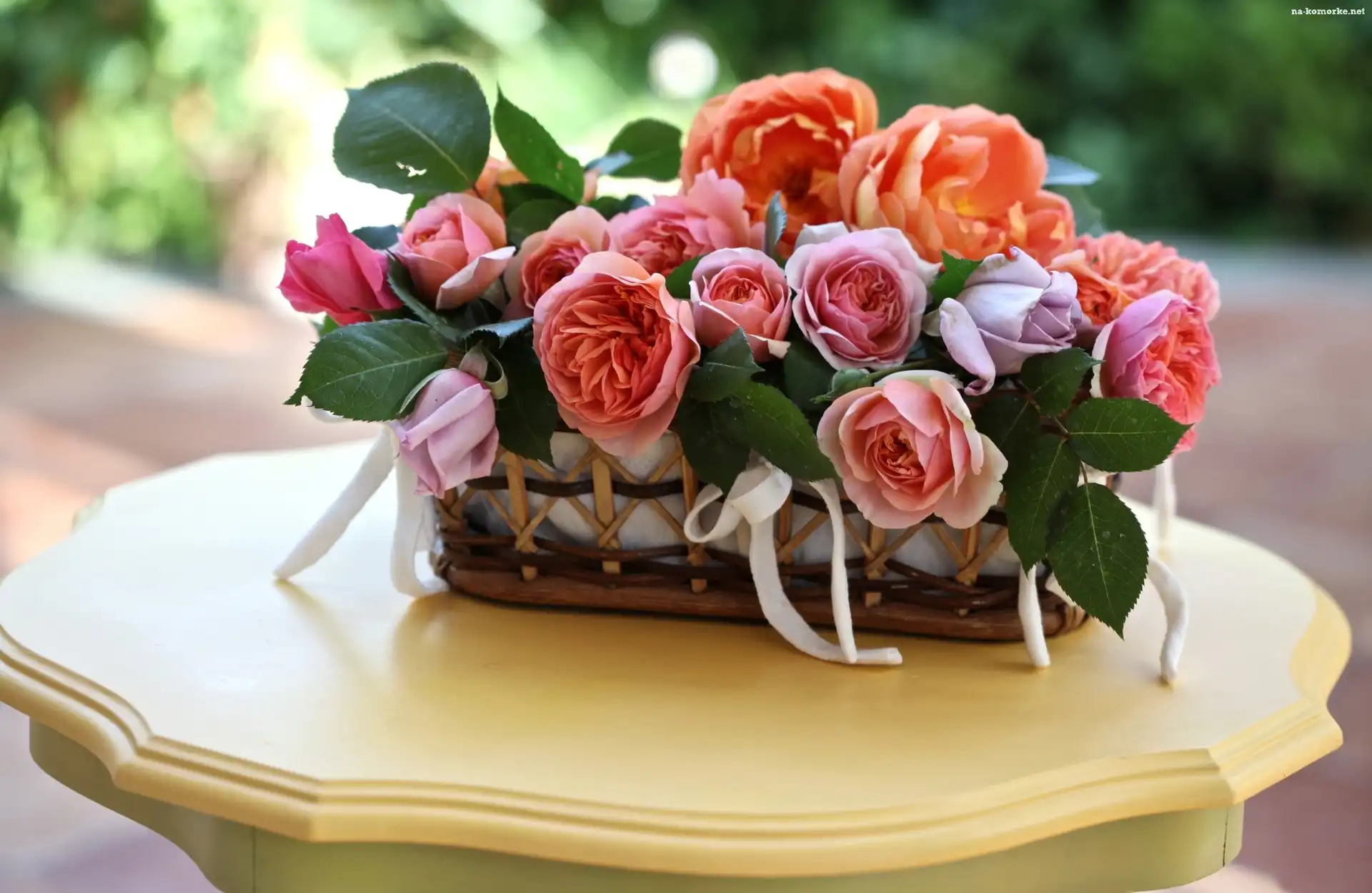 Bukiet, Stół, Kwiatów, Koszyk na Komórkę