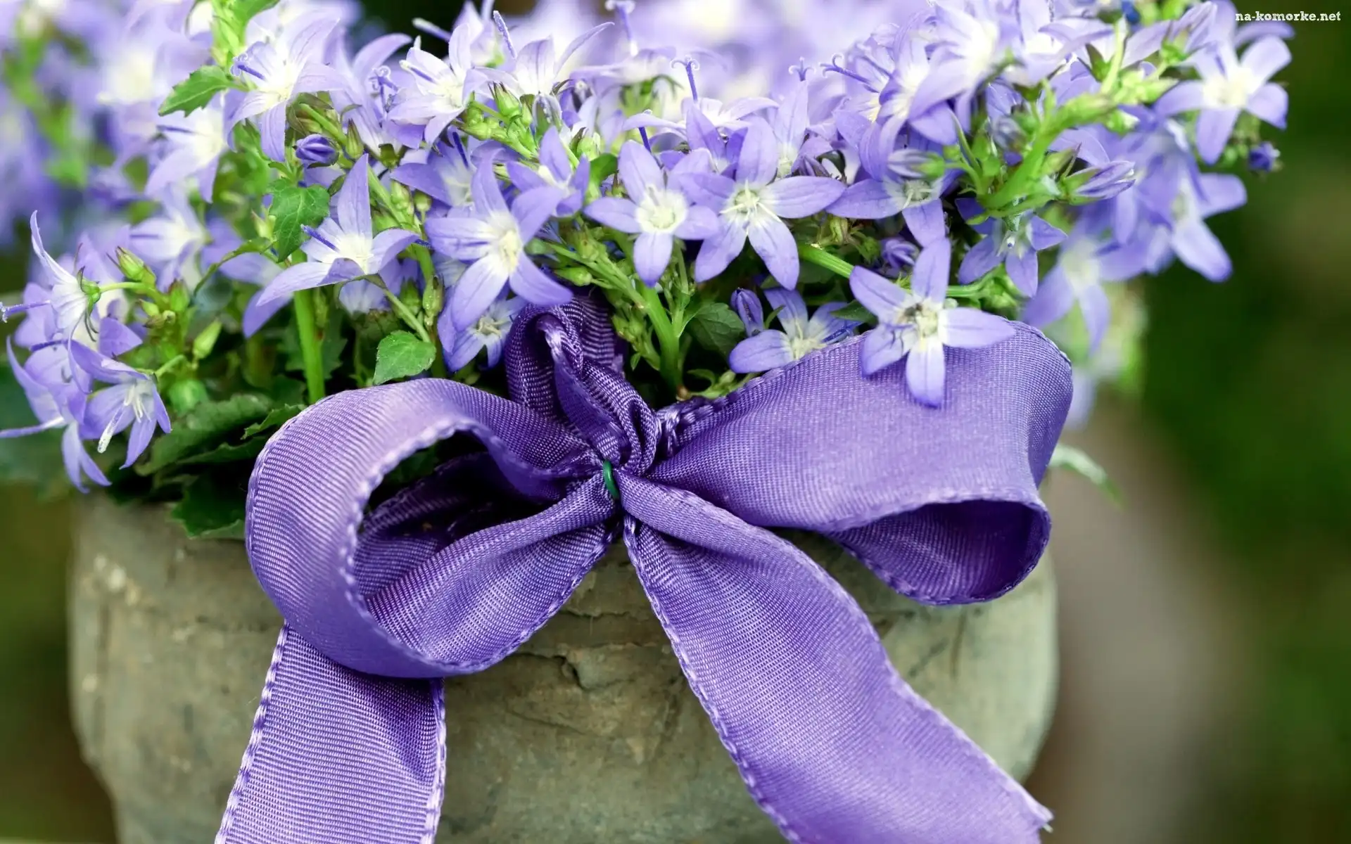Bukiet, Wstążka, Niebieskich, Kwiatów na Komórkę
