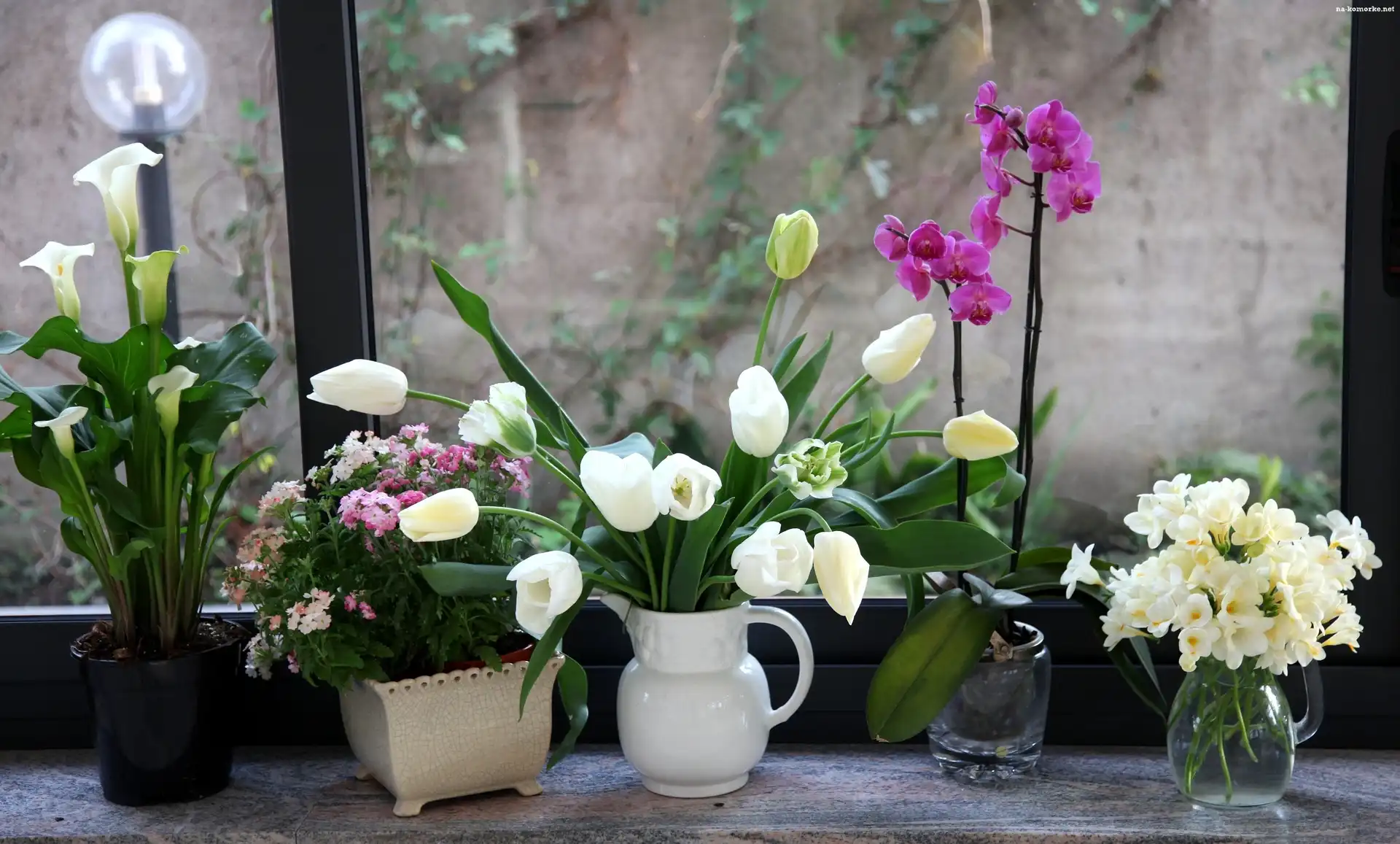 Bukiety, Okno, Wiosennych, Kwiatów na Komórkę