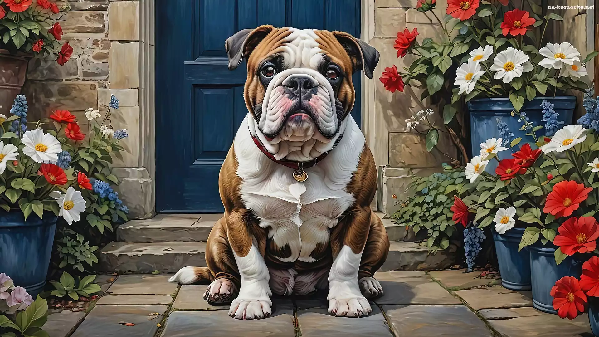 Pies, Kwiaty, Dom, Buldog angielski, Grafika na Komórkę