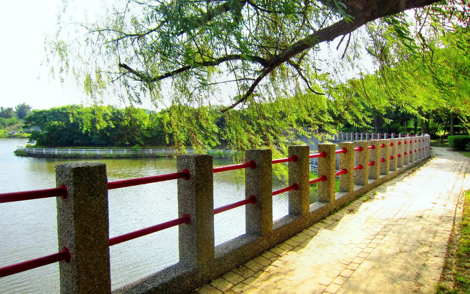 Jezioro, Bulwar, Drzewa na Komórkę