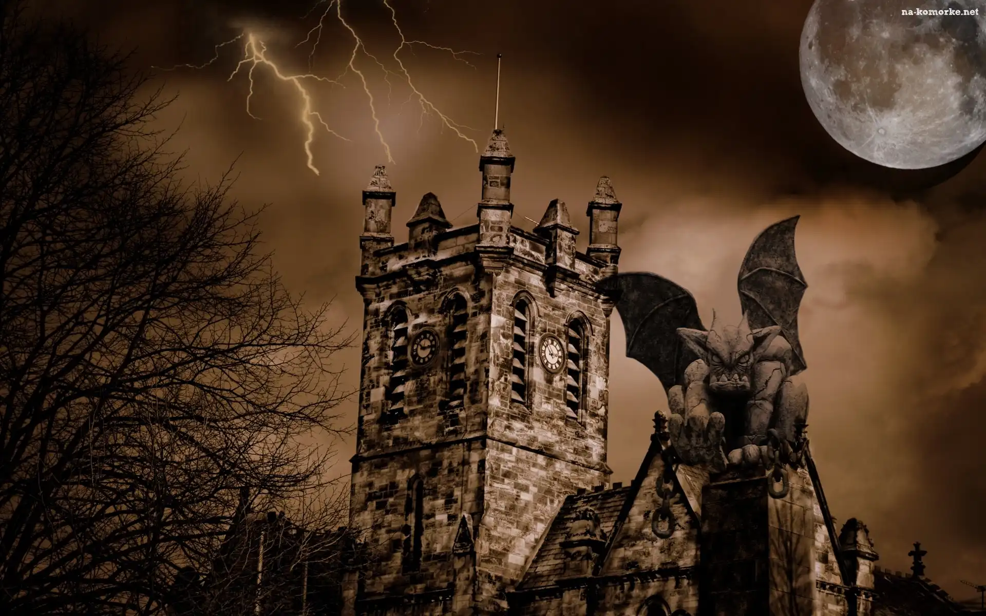 Burza, Wieża, Gargulec, Sepia, Księżyc, Piorun na Komórkę