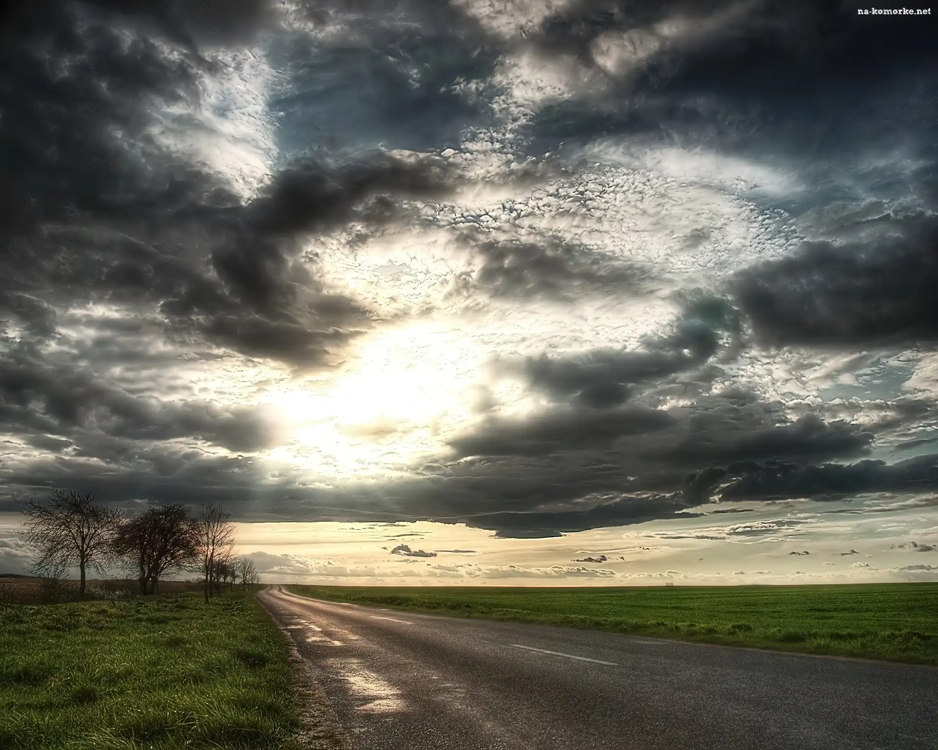 Światło, Droga, Burzowe, Chmury na Komórkę
