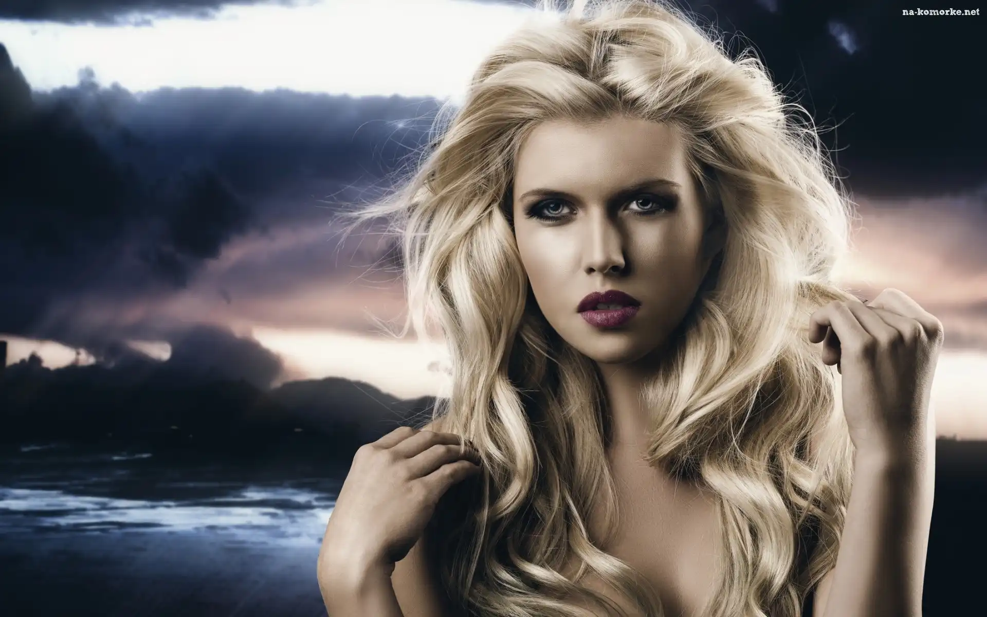 Burzowe Niebo, Kobieta, Blondynka, Modelka, Makijaż na Komórkę