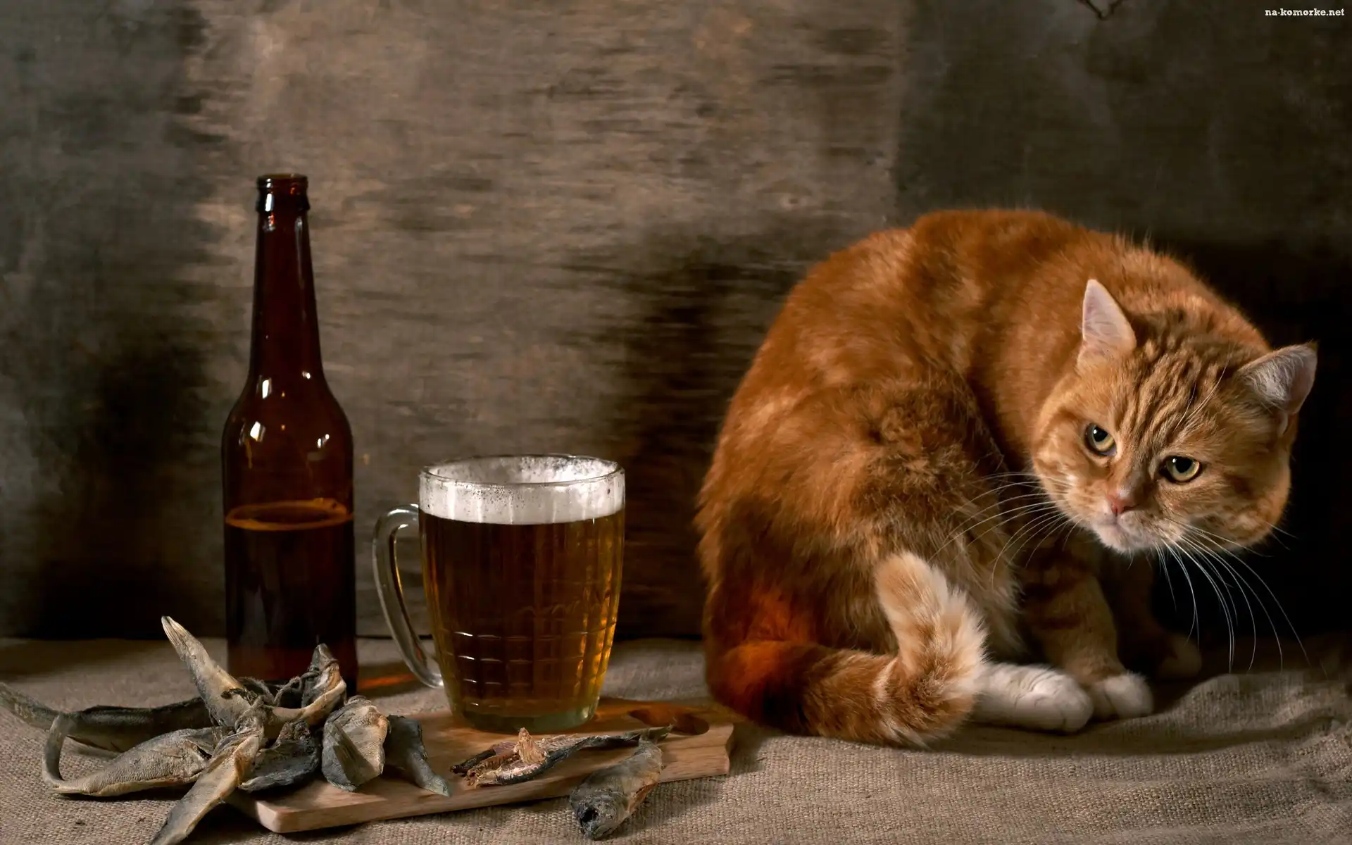Butelka, Kot, Rudy, Rybki, Piwo, Suszone na Komórkę