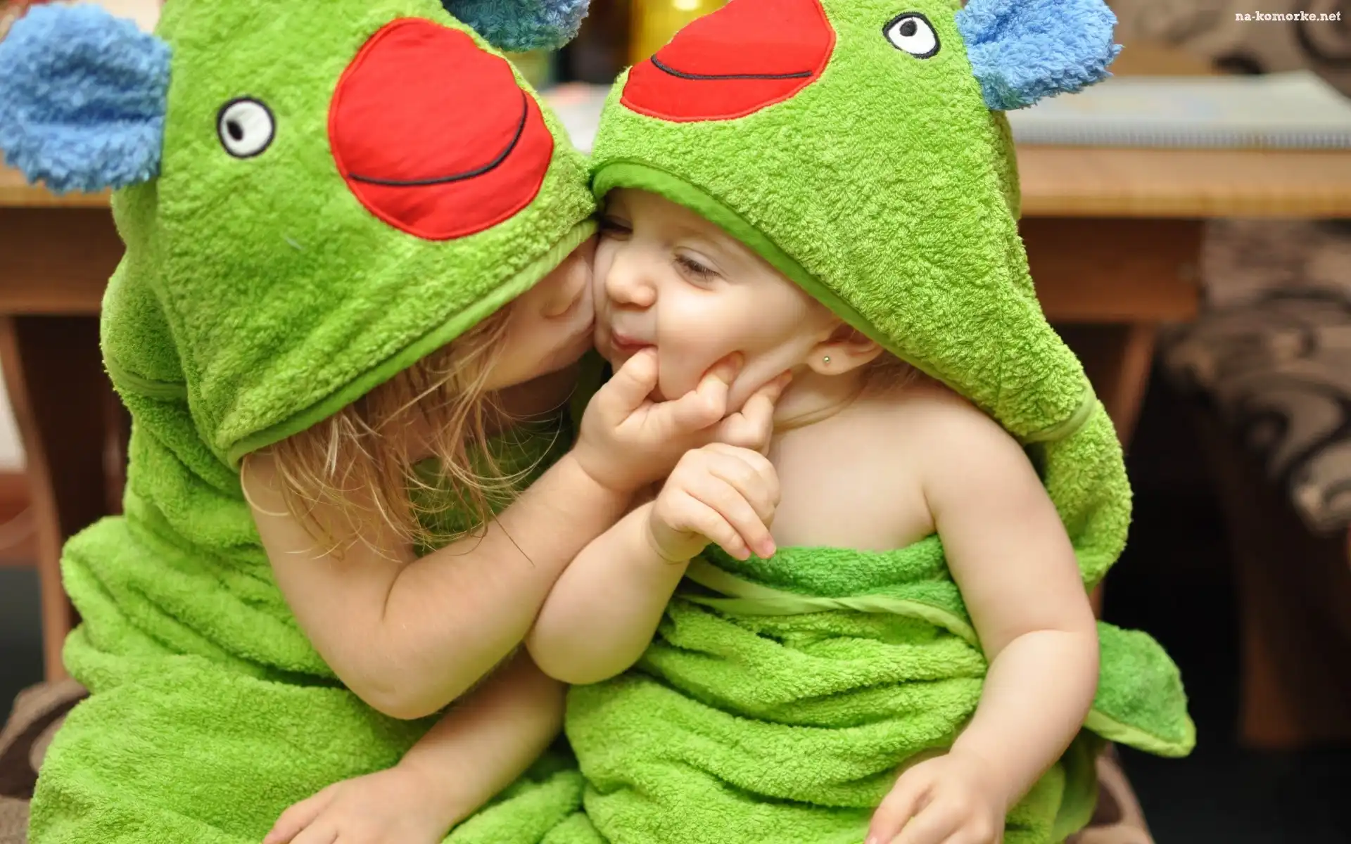 Buziak, Dwoje, Dzieci, Zielone, Ręczniki na Komórkę