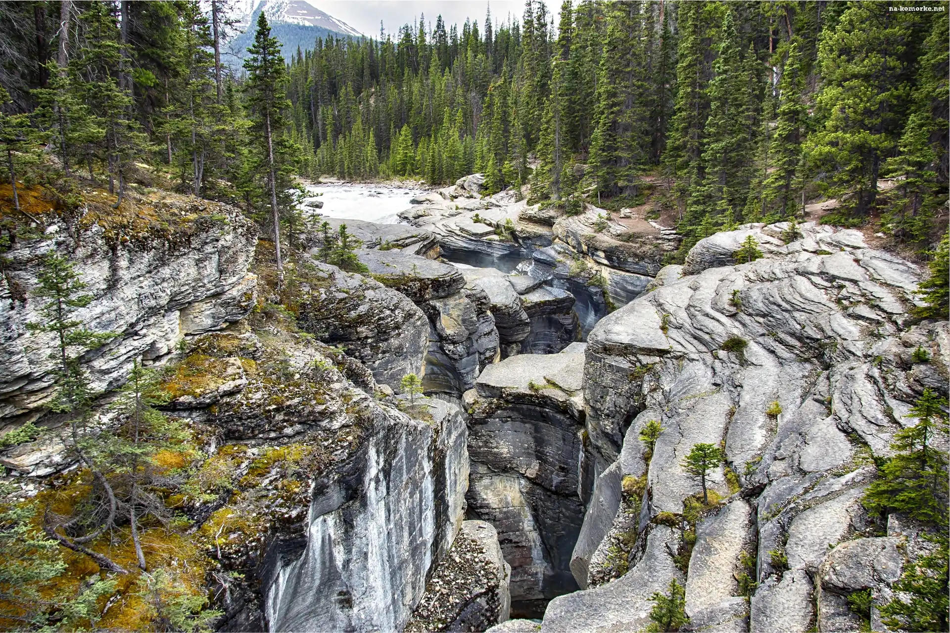 Kanada, Mistaya Canyon, Rzeka, Prowincja Alberta, Park Narodowy Banff, Góry, Las na Komórkę