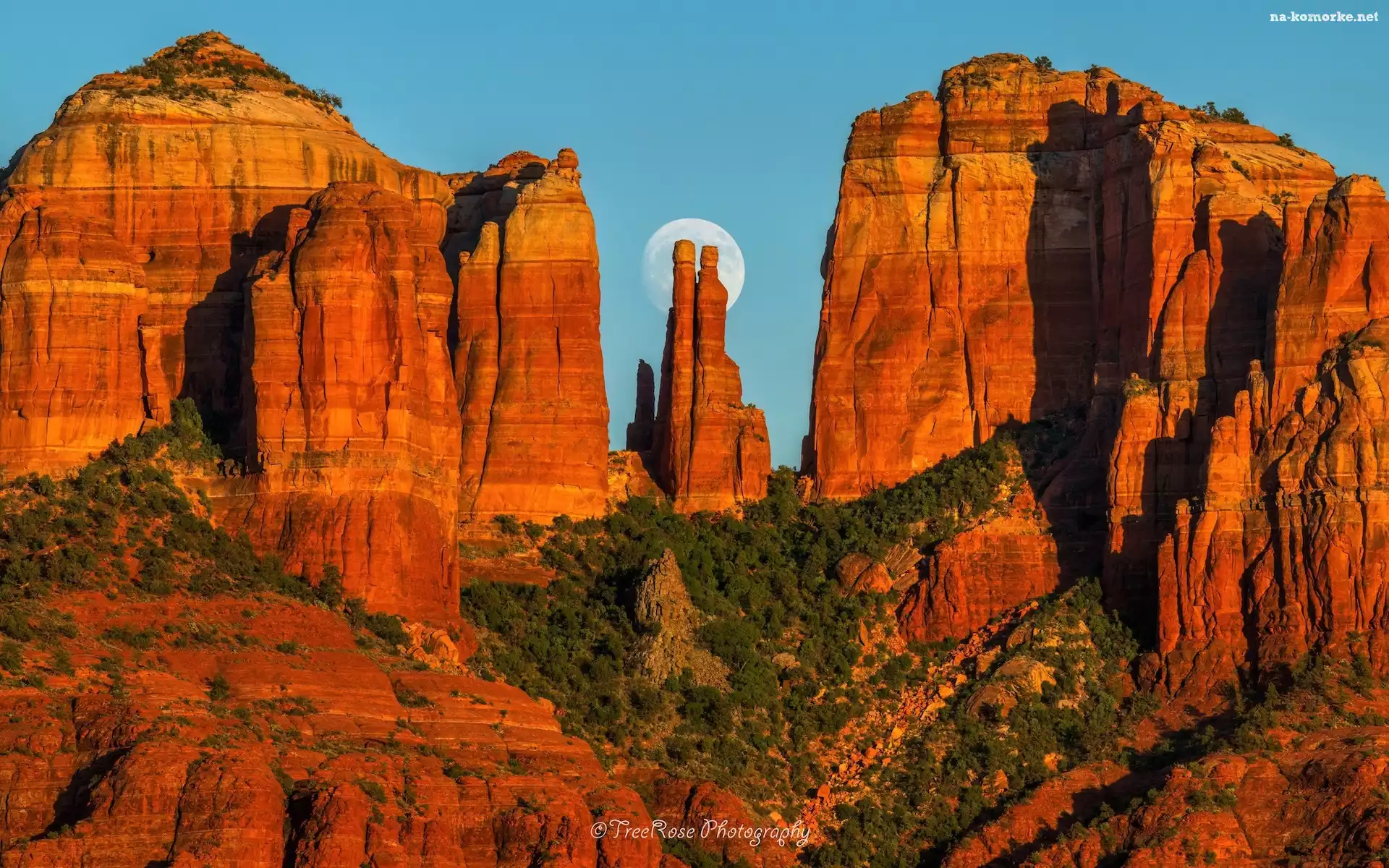 Stany Zjednoczone, Skały, Cathedral Rock, Arizona, Księżyc na Komórkę