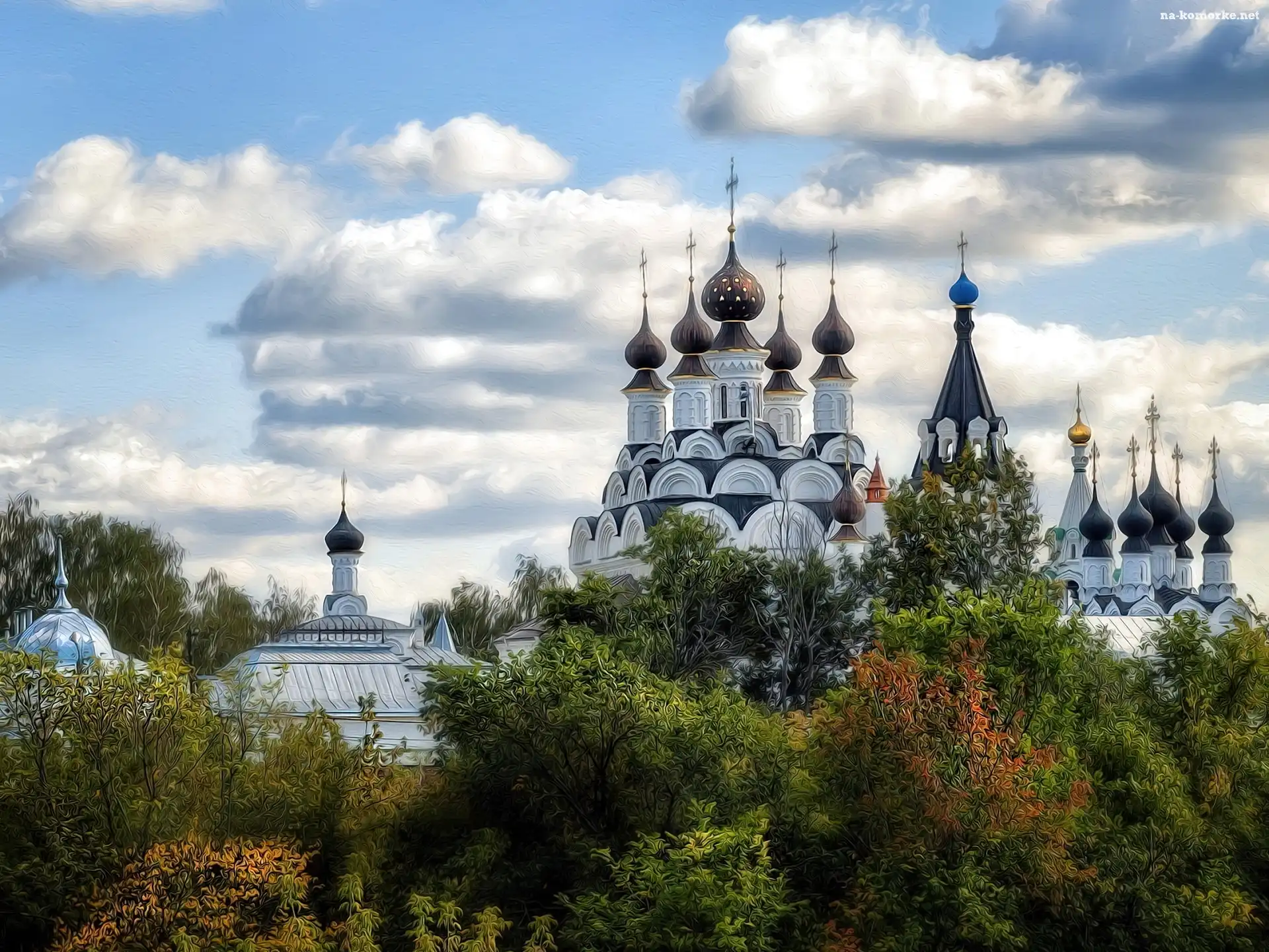 Cerkiew, Art, Chmury, Zieleń na Komórkę