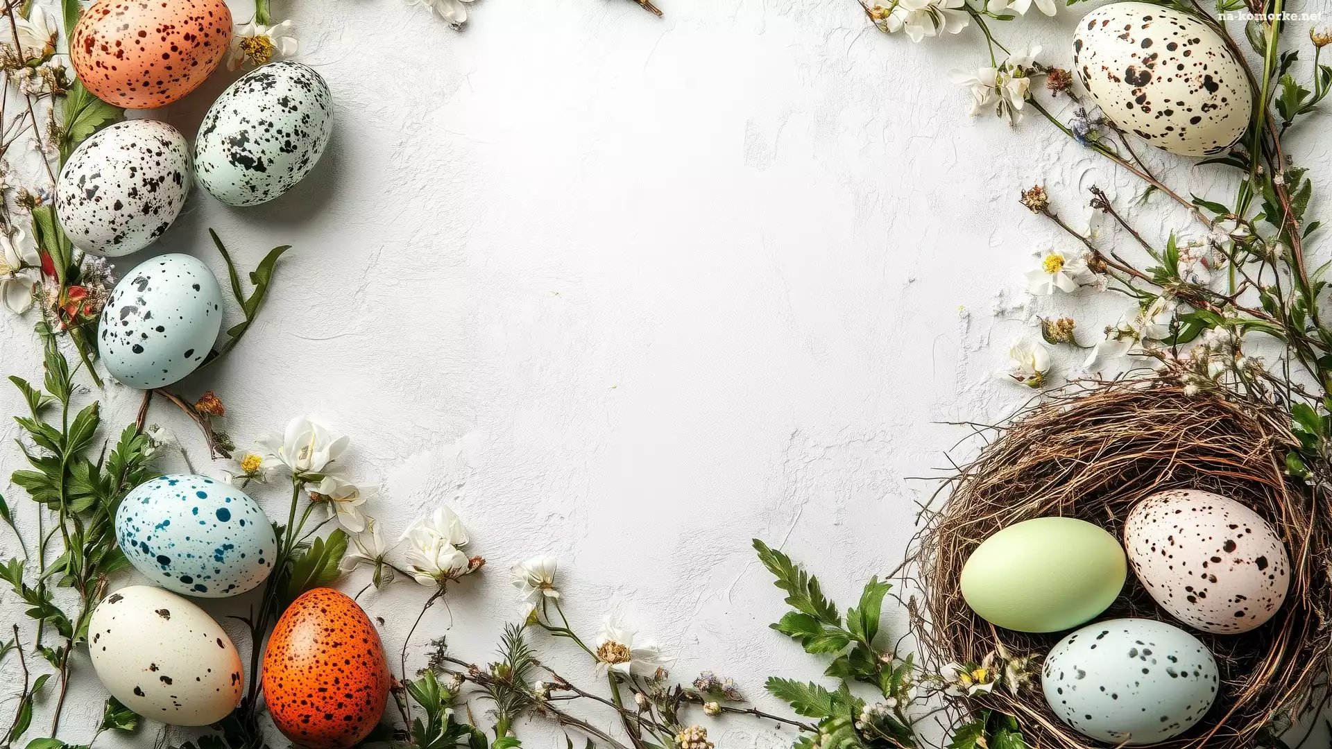 Pisanki, Białe, Białe, Wielkanoc, Kwiaty, Tło, Gniazdo, Cętkowane na Komórkę