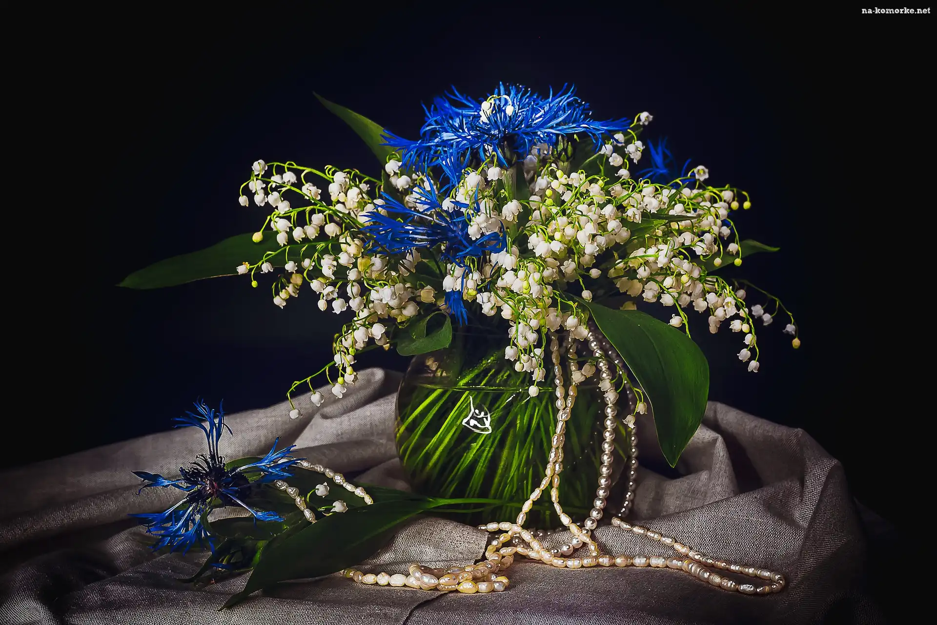 Konwalie, Kwiaty, Wazon, Chabry, Koraliki, Bukiet na Komórkę