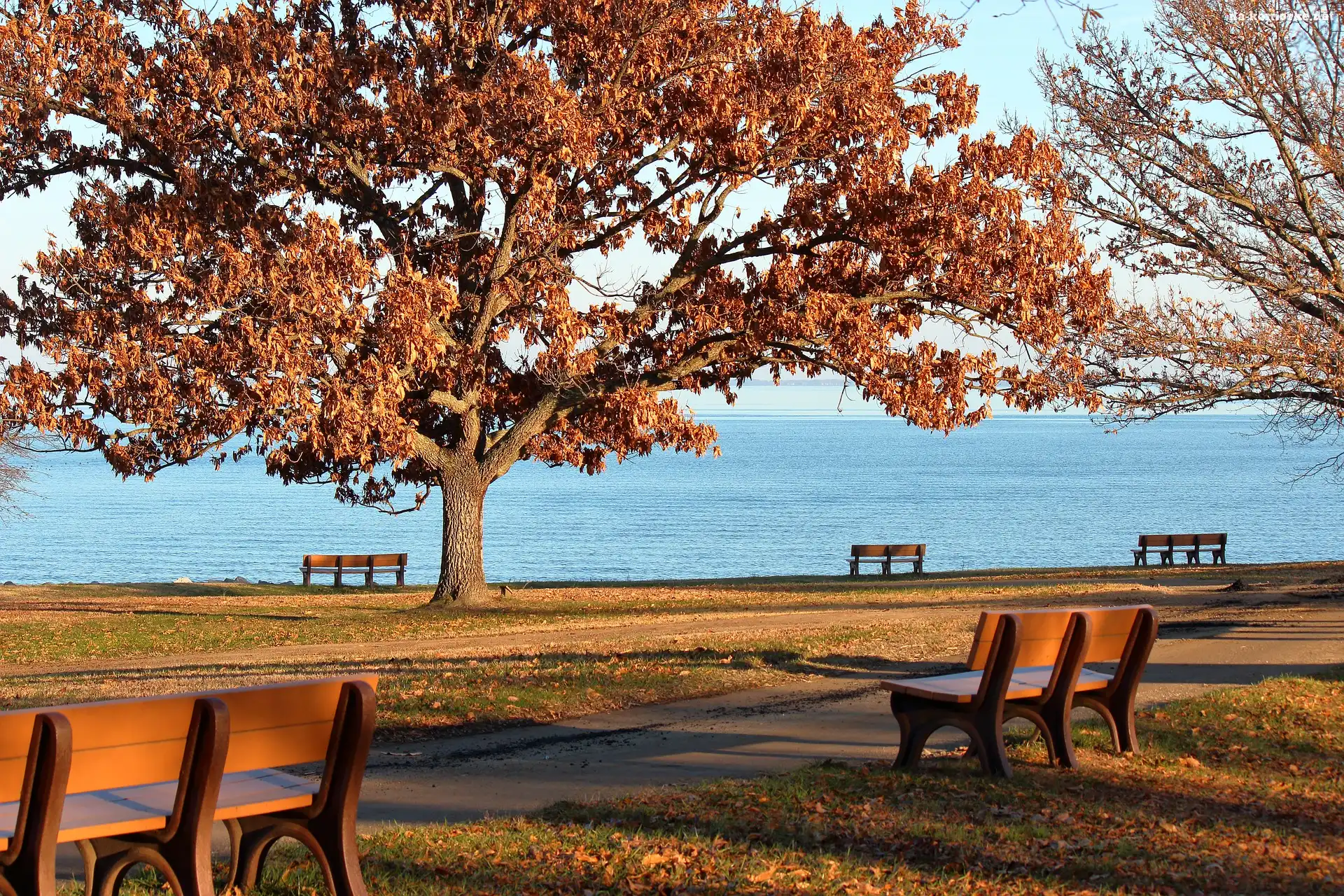 Jesień, Ławki, Zatoka Chesapeake, Drzewa, Stany Zjednoczone na Komórkę
