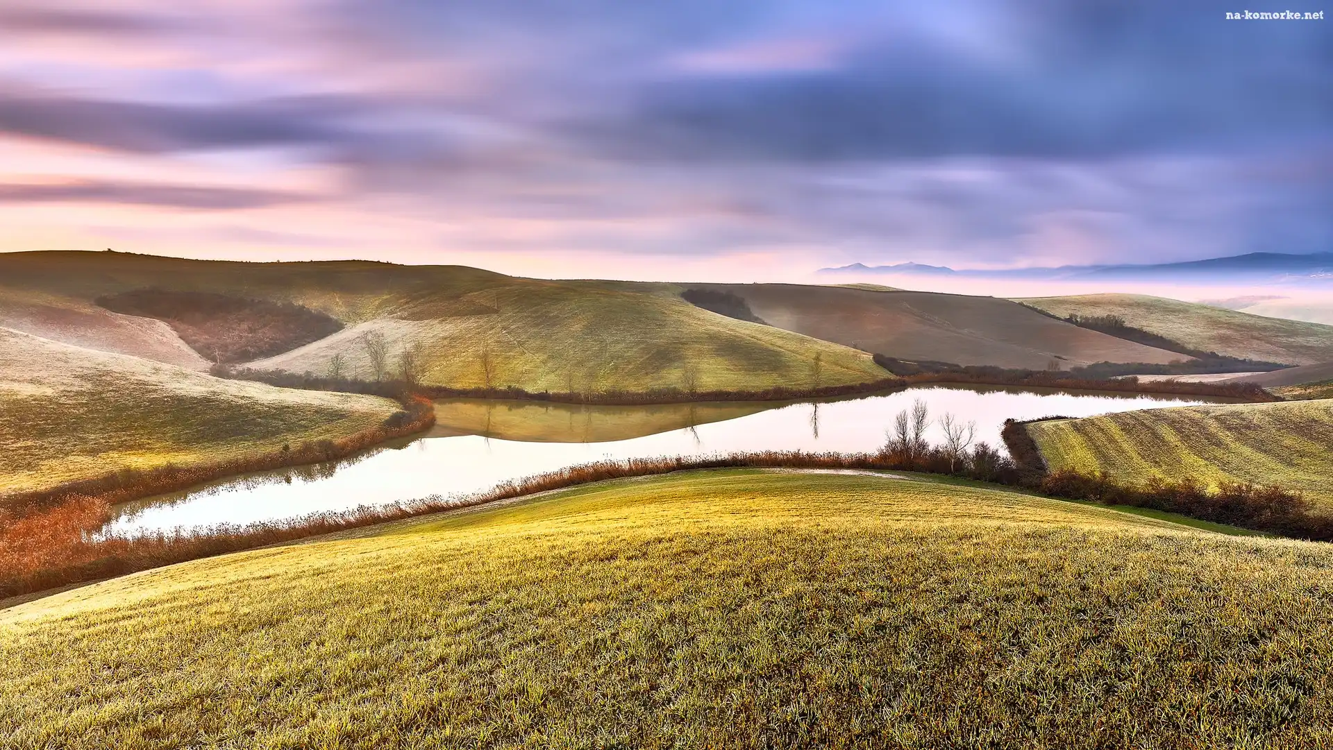 Wschód słońca, Abruzja, Włochy, Wzgórza, Jezioro, Villamagna, Prowincja Chieti na Komórkę