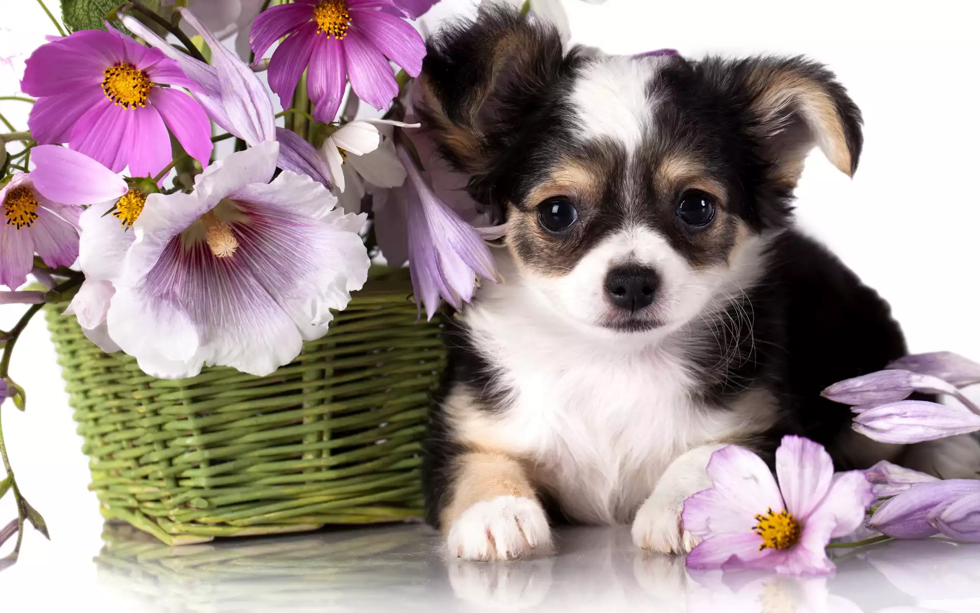 Chihuahua, Kwiatki, Szczeniak, Kosz na Komórkę