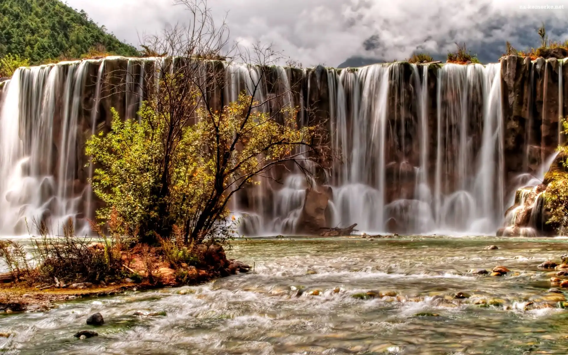 Chiny, Wodospad, Rzeka, Jesień, Drzewa na Komórkę