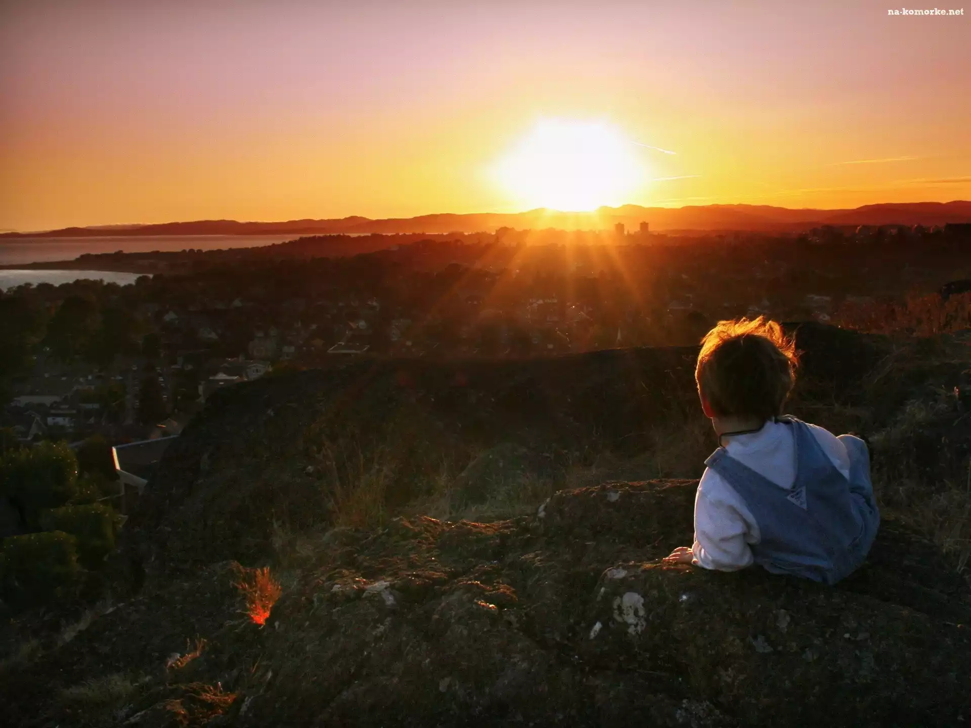 Chłopiec, Zachód, Słońca, Góry, Jezioro na Komórkę