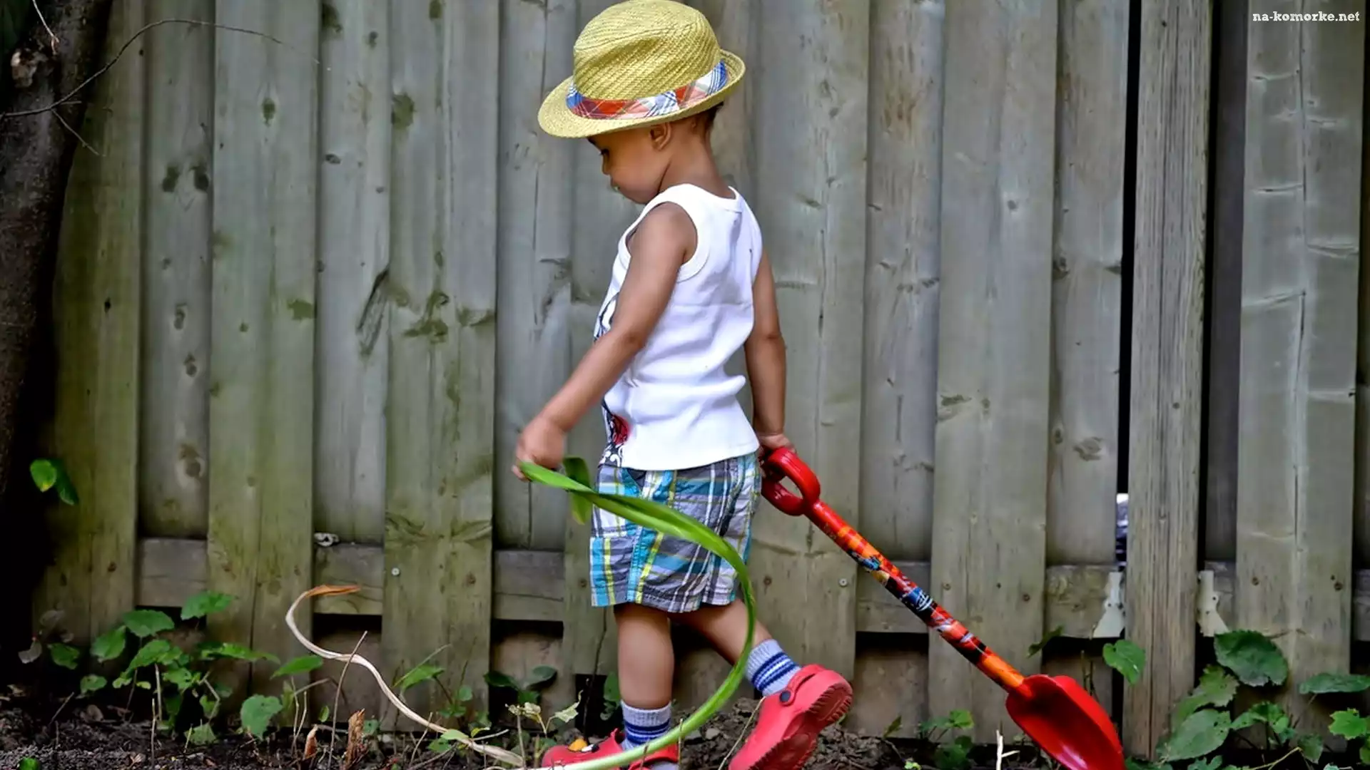 Chłopiec, Płot, Kapelusz, Łopatka na Komórkę