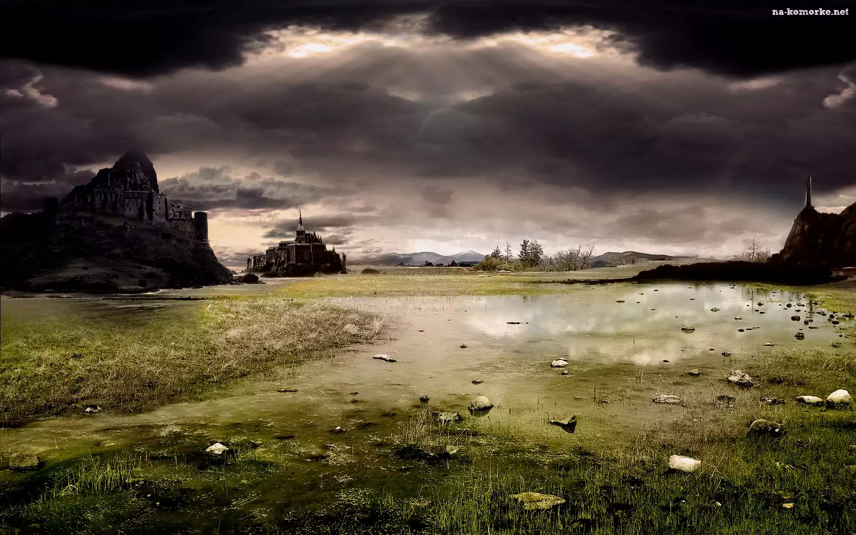 Chmury, Zamki, Wzgórza, Łąka, Czarne na Komórkę