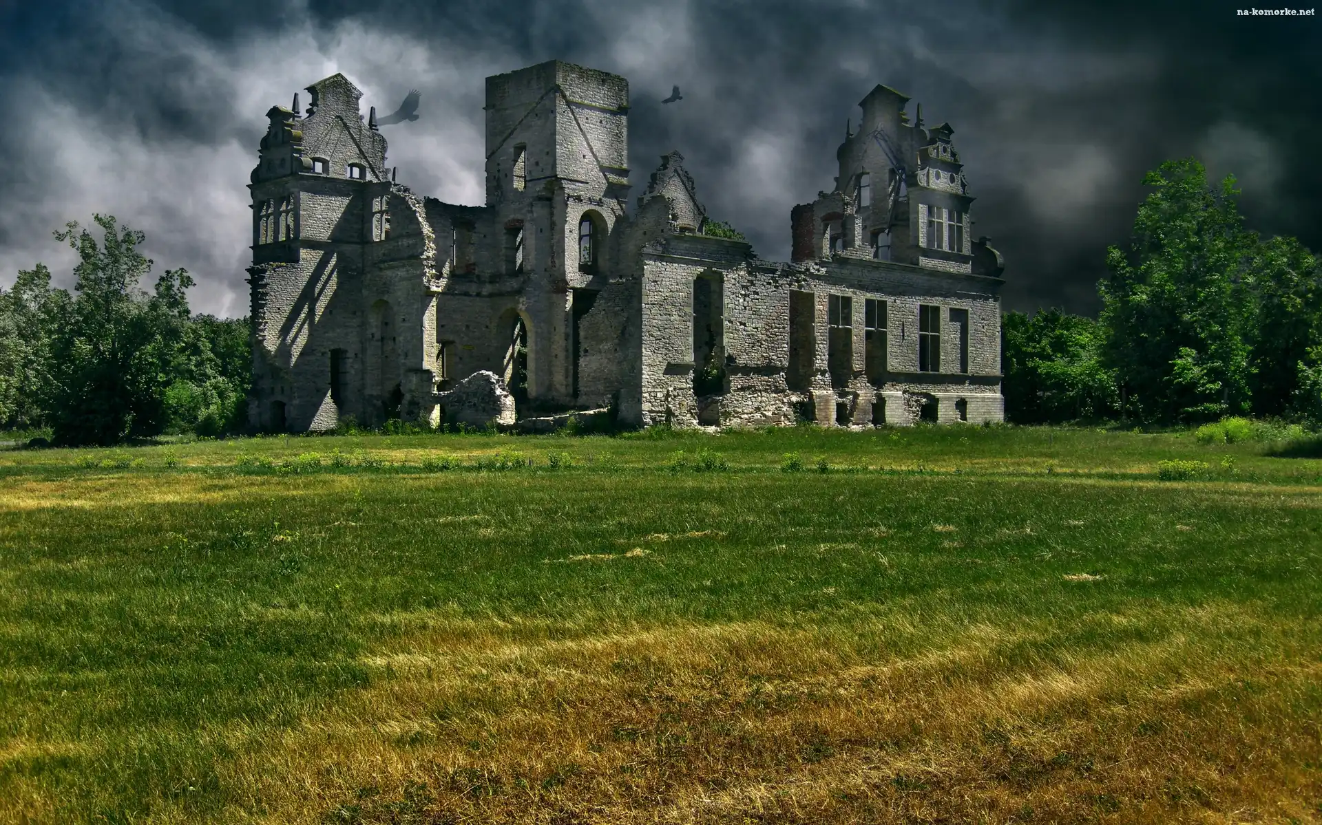Chmury, Zamku, Łąka, Ruiny na Komórkę