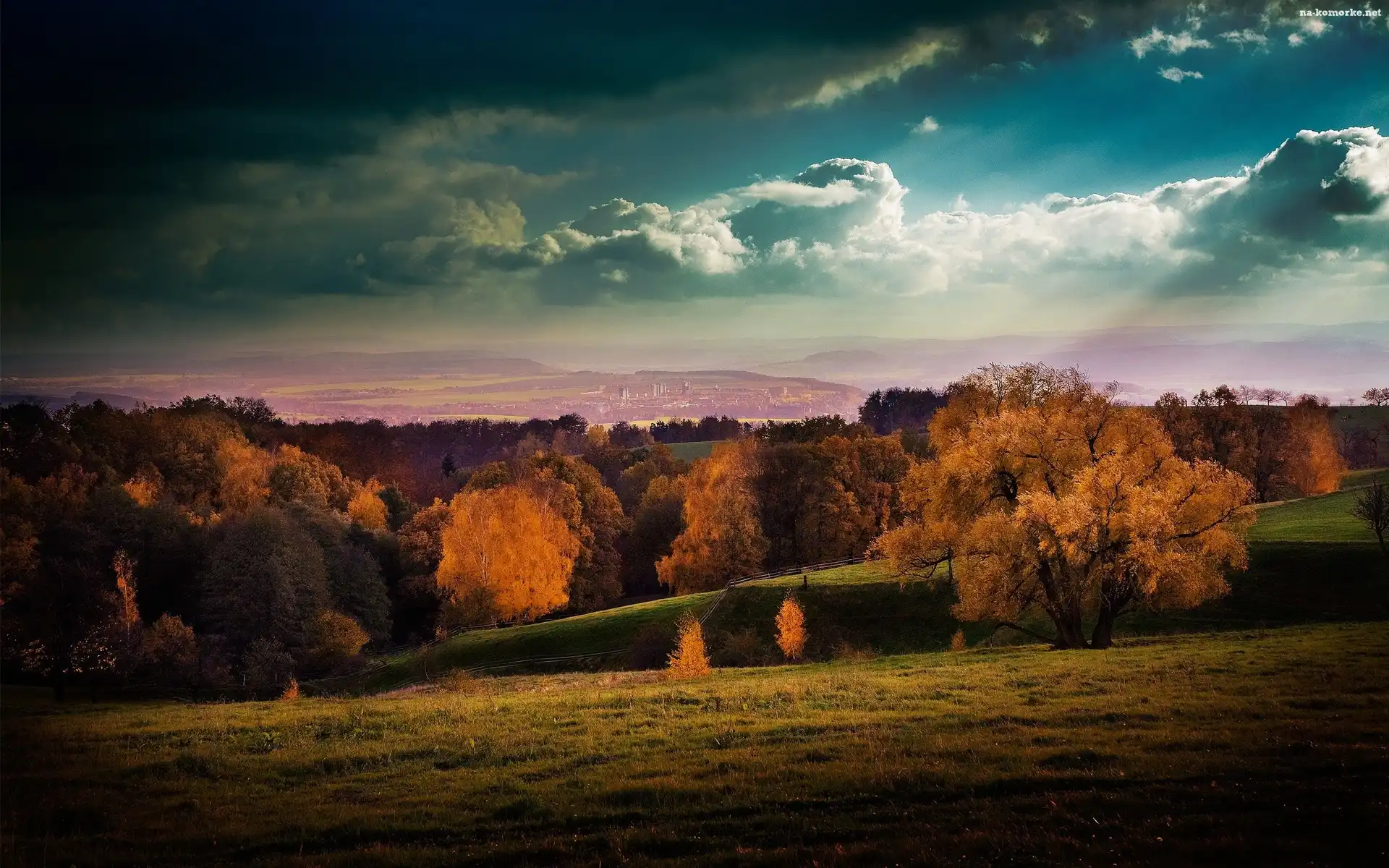Chmury, Łąka, Gąszcz, Drzew, Ciemne na Komórkę