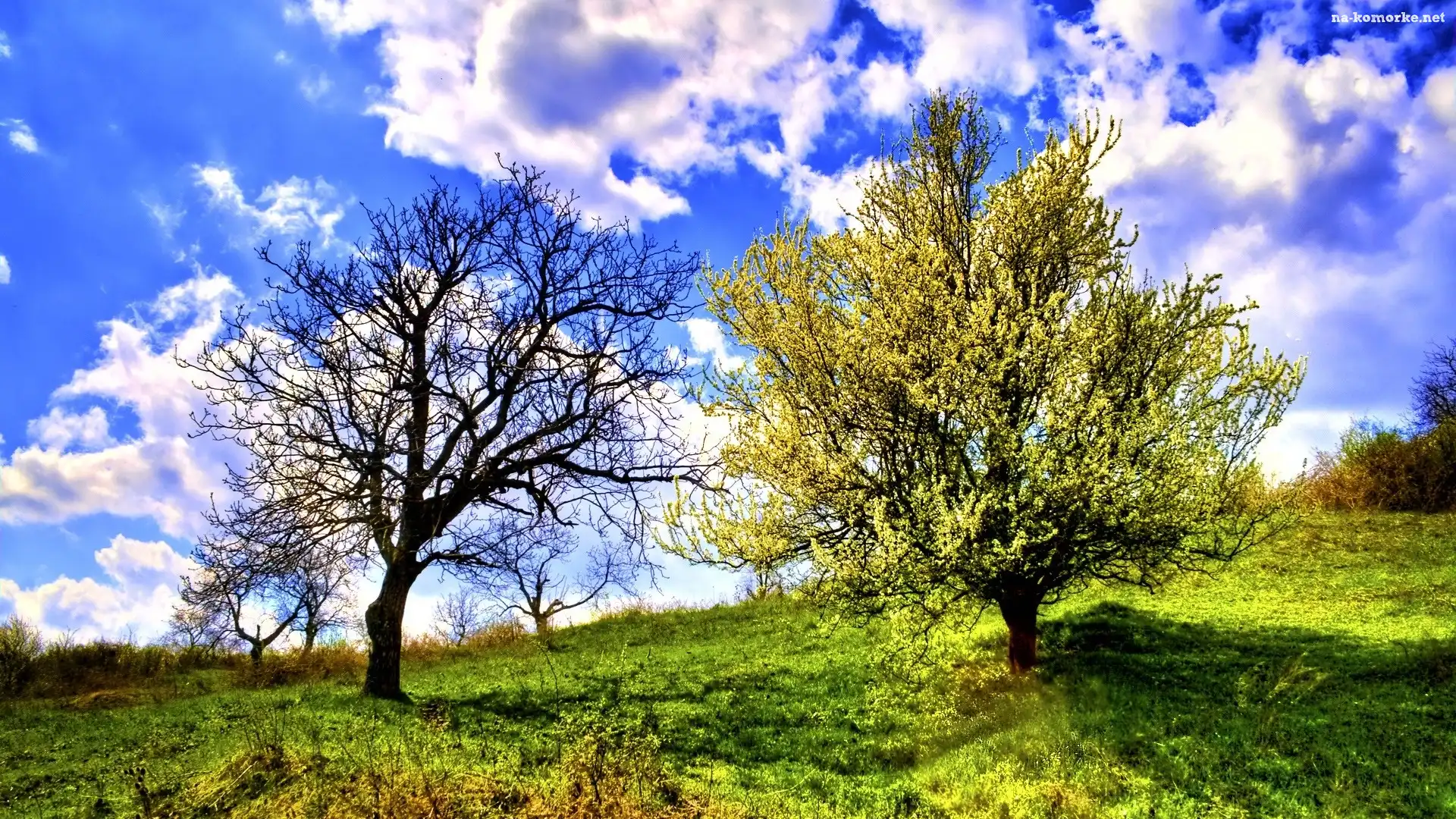 Chmury, Trawa, Łąka, Drzewa, Niebo na Komórkę