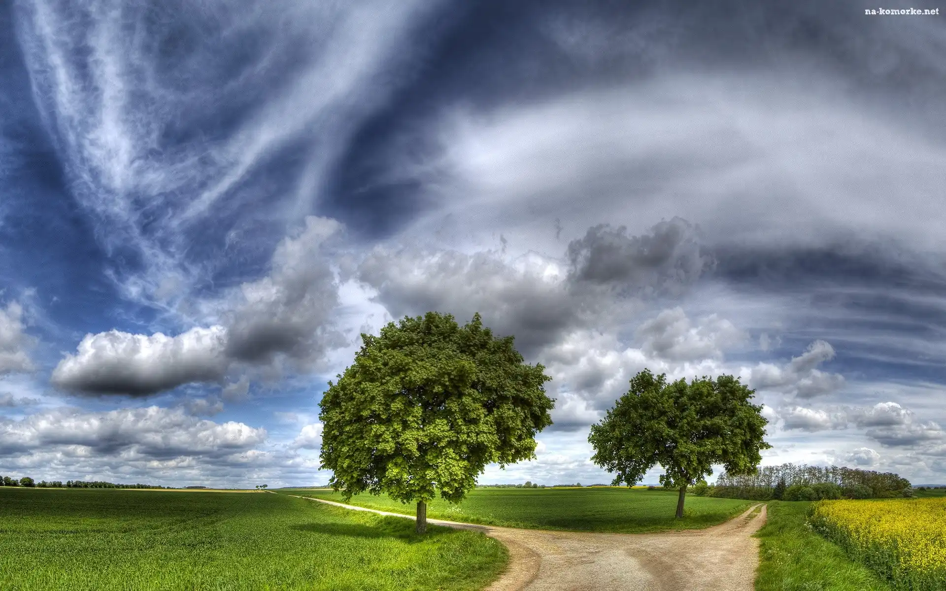 Chmury, Drogi, Drzewa, Rozwidlenie na Komórkę