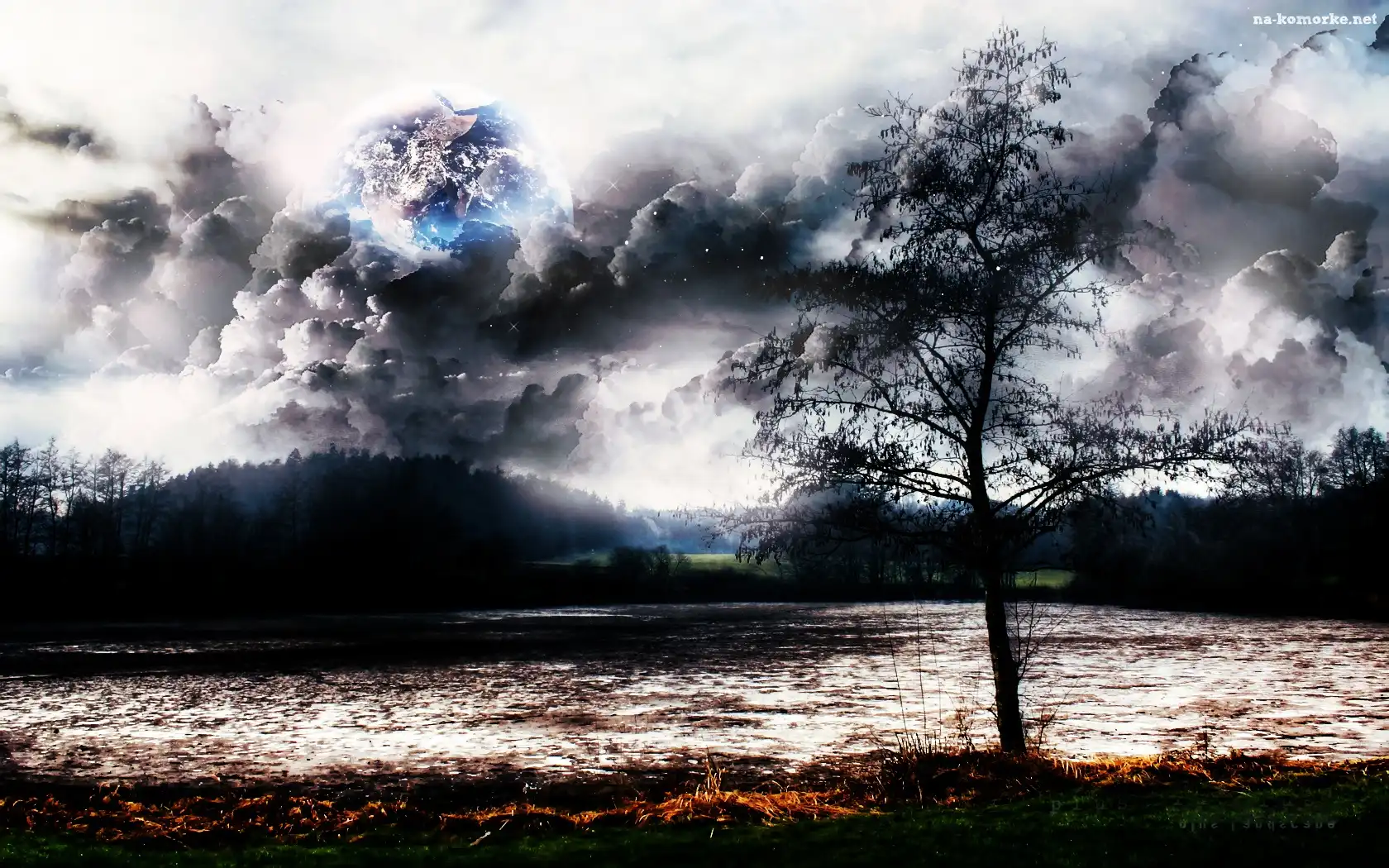 Drzewo, Chmury, Jezioro na Komórkę