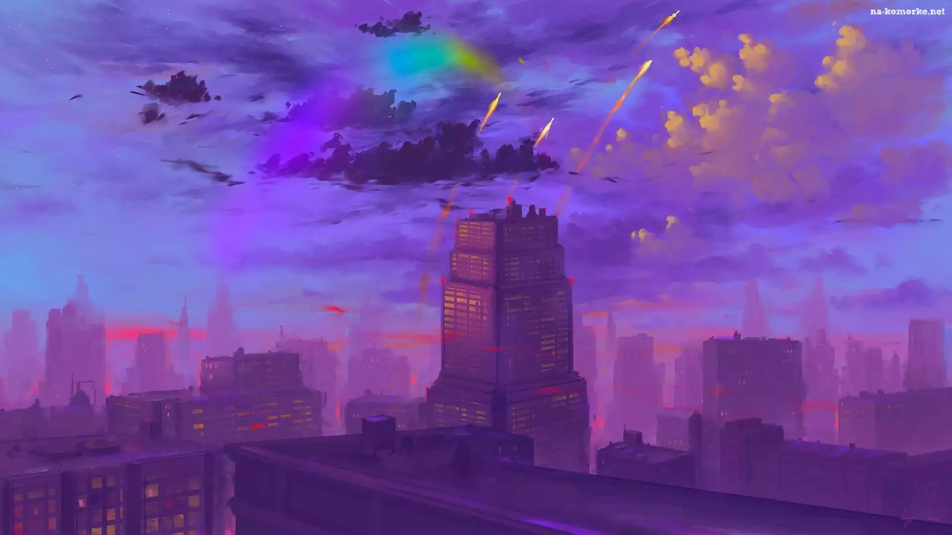 Niebo, Grafika, Domy, Chmury, Miasto, Fantasy na Komórkę