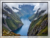 Góry, Chmury, Fiord, Opadające, AI na Komórkę
