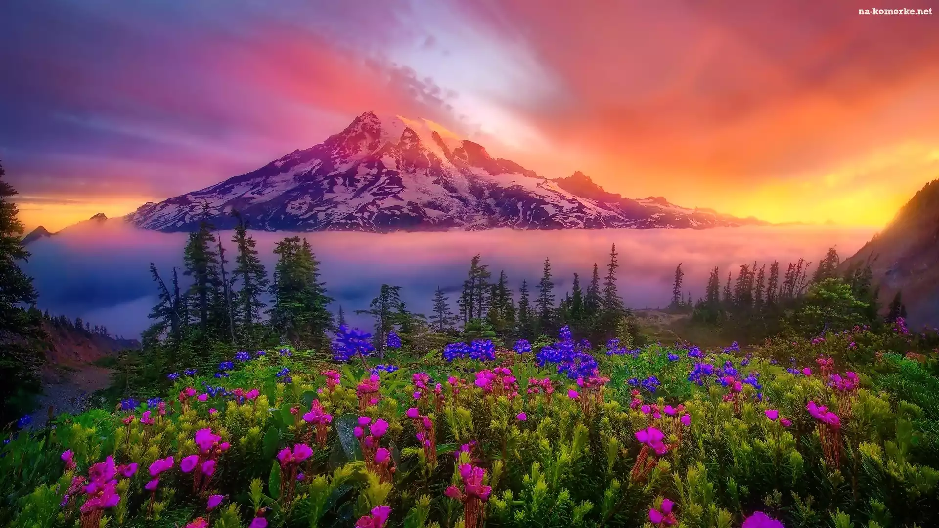 Góry, Chmury, Kwiaty na Komórkę