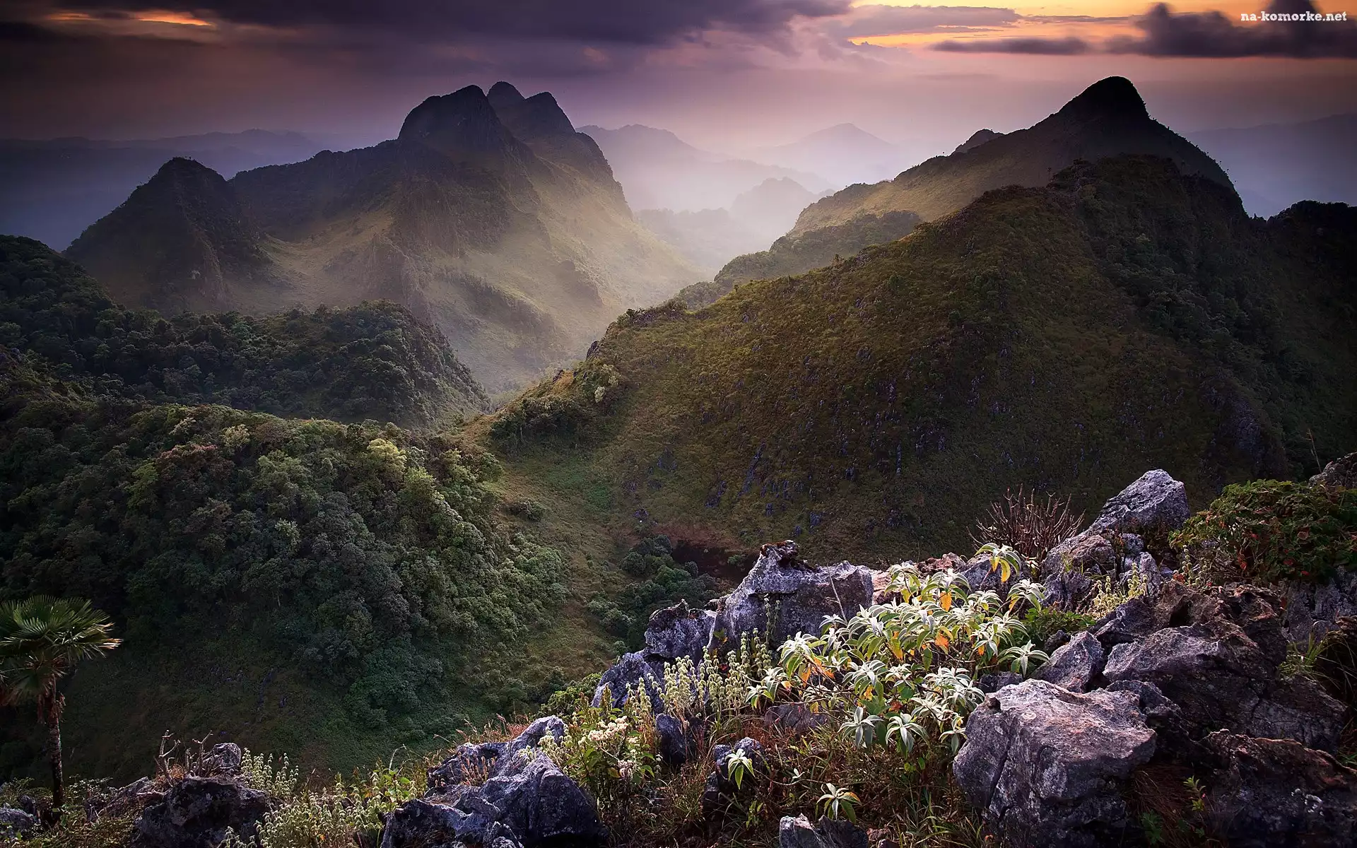 Góry Żółte, Kwiatki Ulica, Góry Plumeria Księżyc, Chmury, Horyzont Góry, słońce Góra, Zachód Słońca, Chmura Alpy, Chmury, Góry Góry, Rzeka, Dolina Żółty, Gerber, Wiosenny, Kwiat Szklany, Kwiat Żółte, Zefiranty Szafirki Chmura, Zachód Słońca
