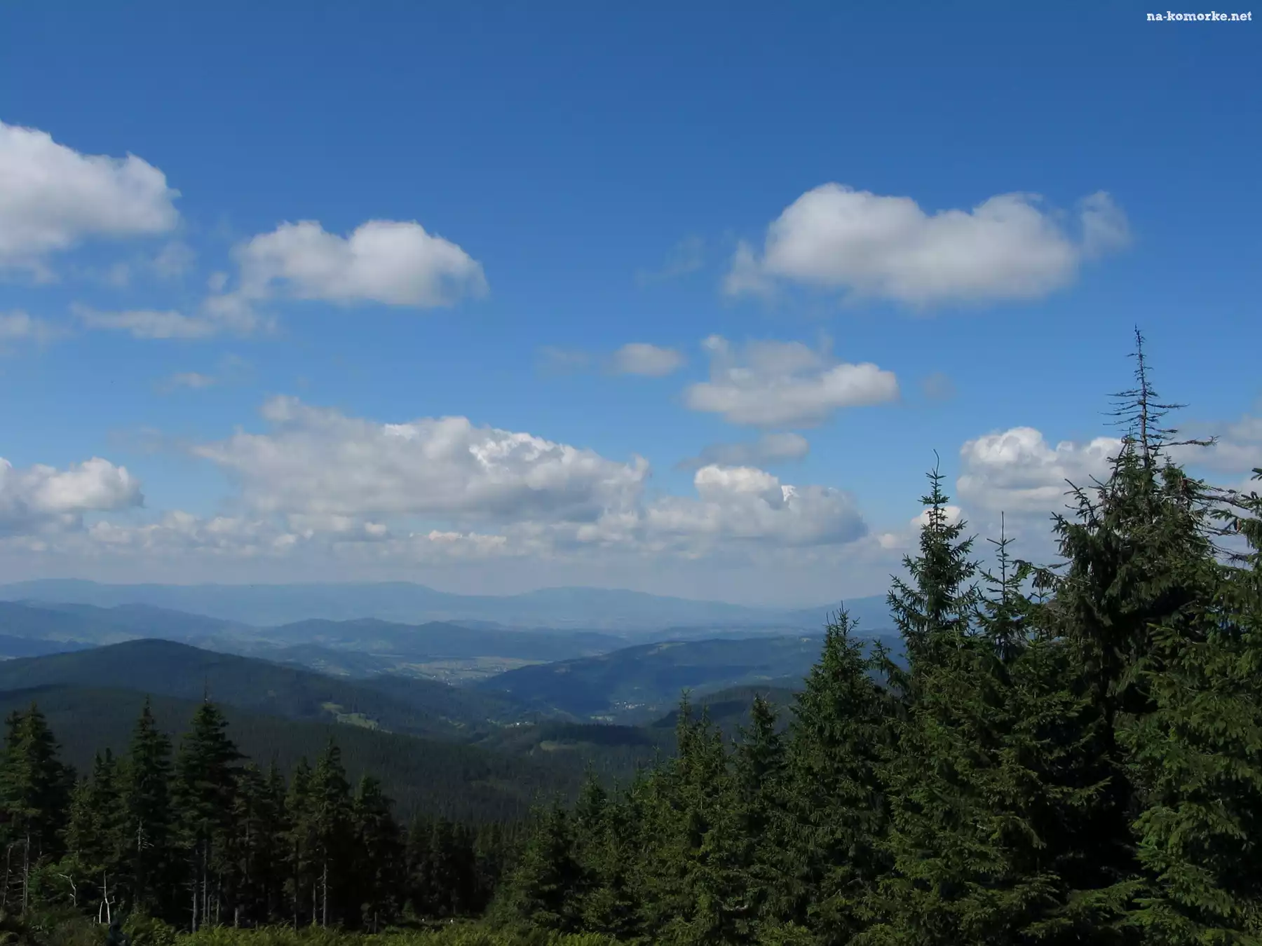 Chmury, Świerki, Lasy, Góry, Niebo na Komórkę